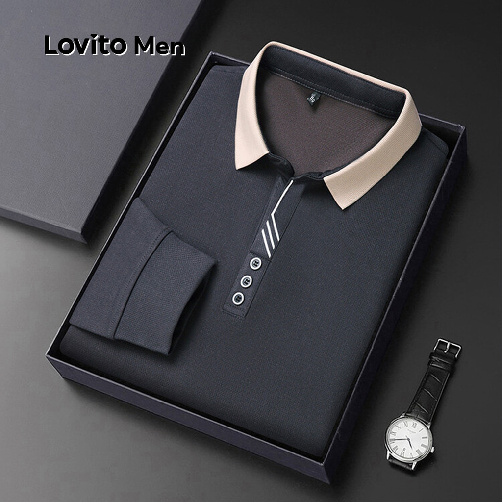 Lovito Camisa Polo Masculina Casual com Cores Combinadas e Botões para Primavera Verão LNE118149