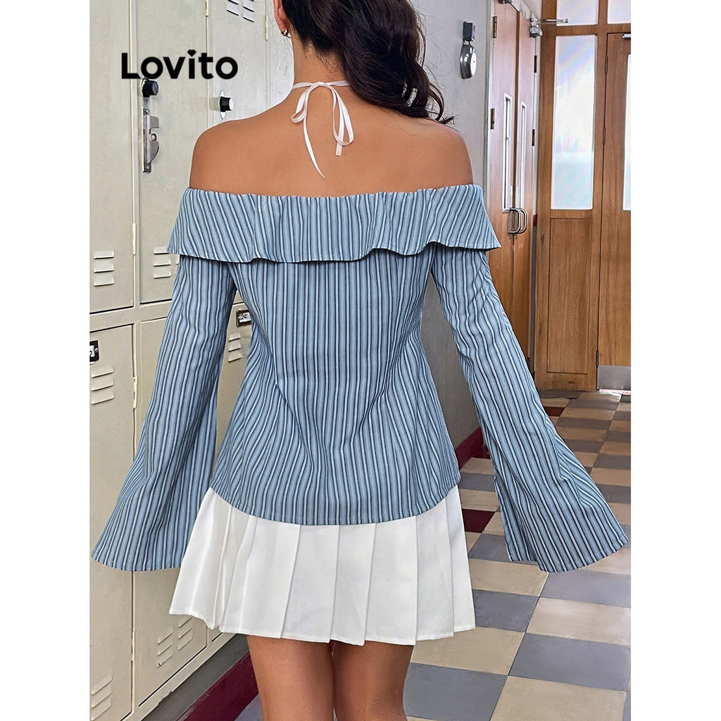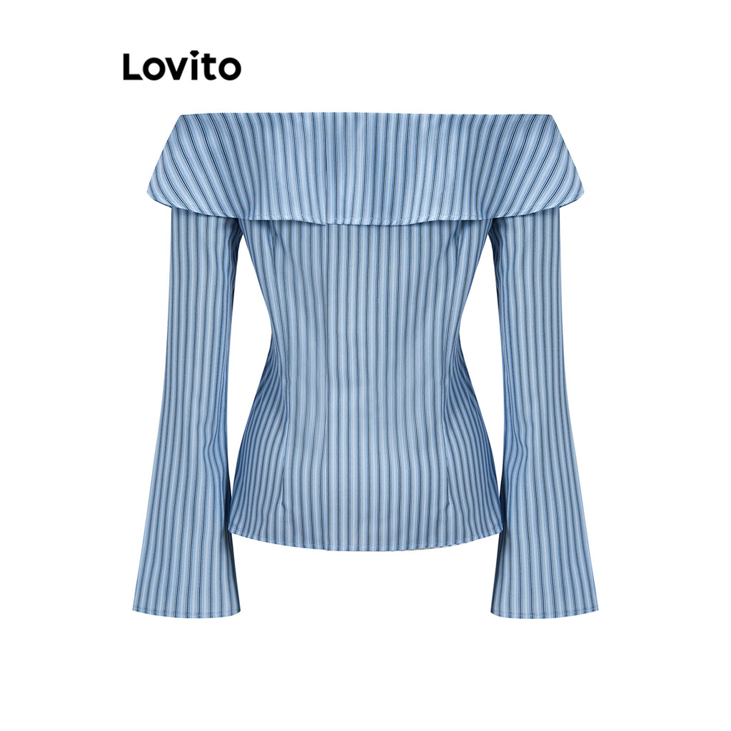 Lovito Refine Blusa Feminina com Botões e Babados L61AD024 (Azul)