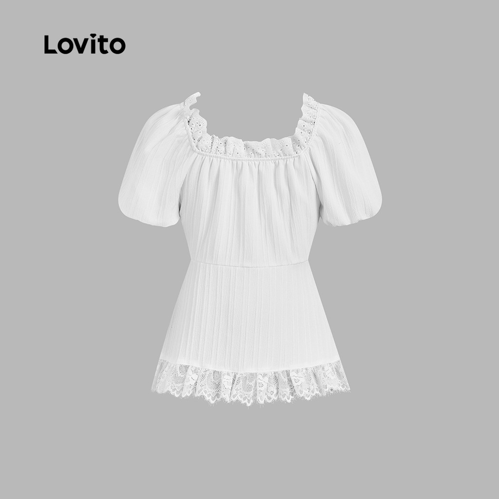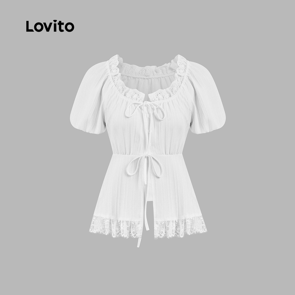 Lovito Blusa Casual com Laço Primavera/verão Blusa Branca para Mulheres LK2AD431