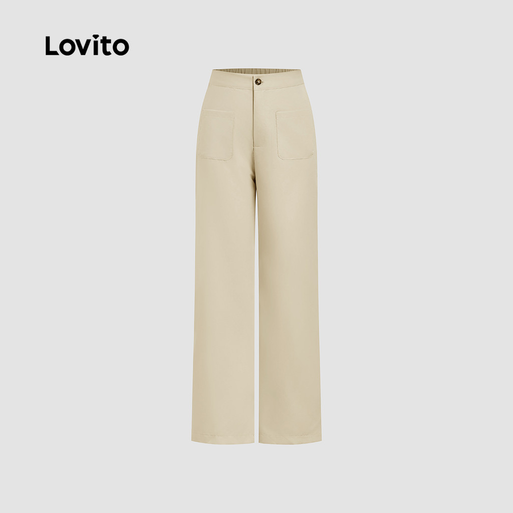 Lovito Calça Casual com Bolso Primavera/verão Cáqui para mulheres LK2EDD130