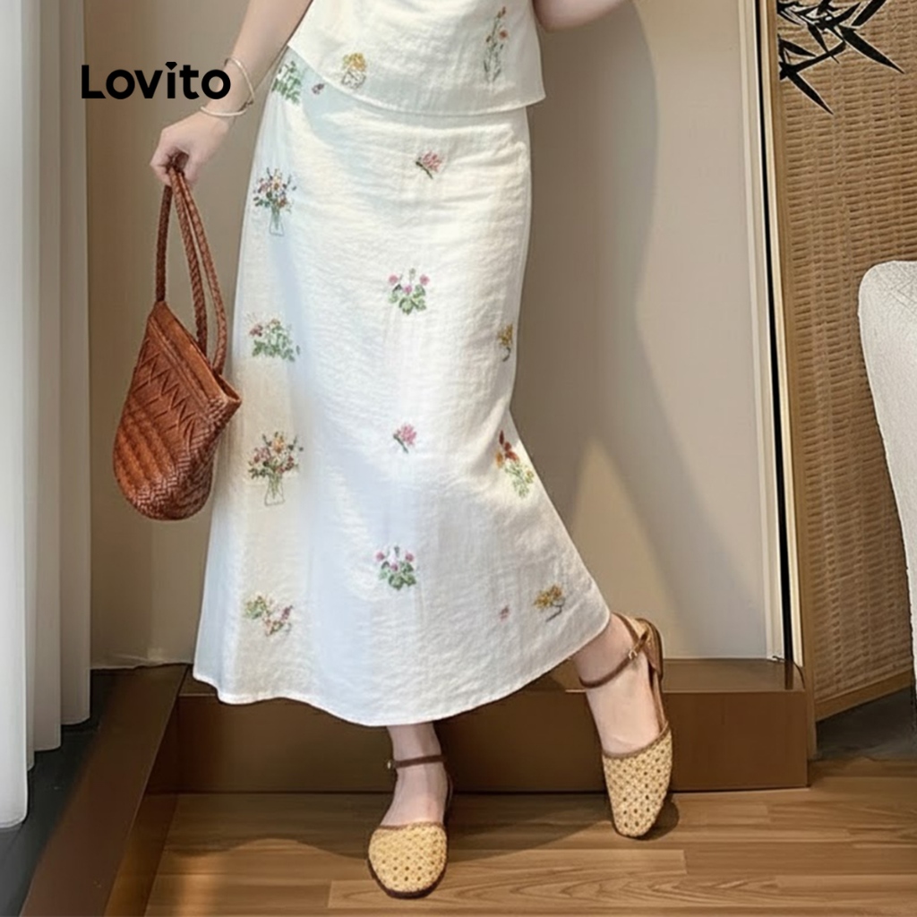 Lovito Blusas ou Saias Estilo Retrô Coloridas para Primavera/Verão Damasco Feminino L164ED1025