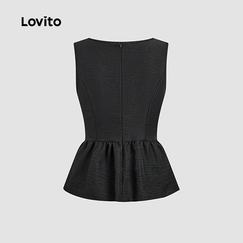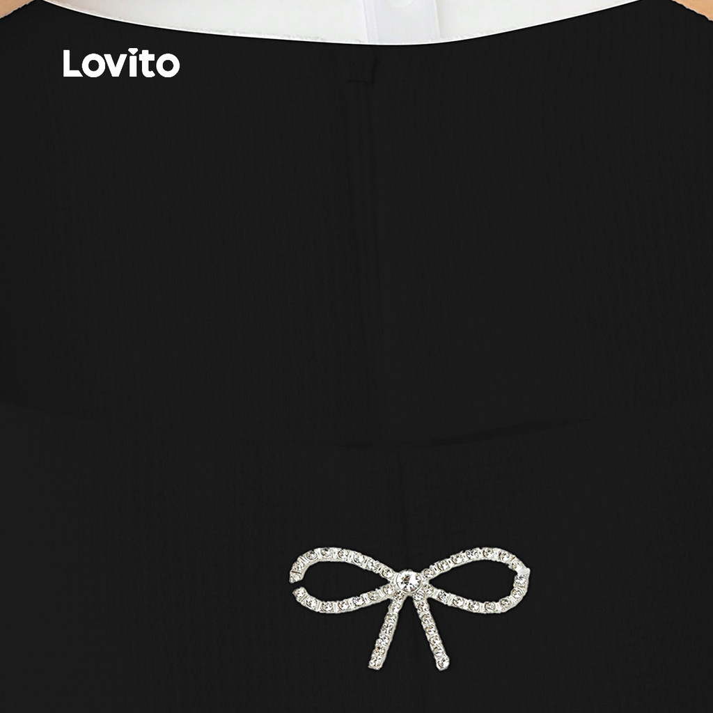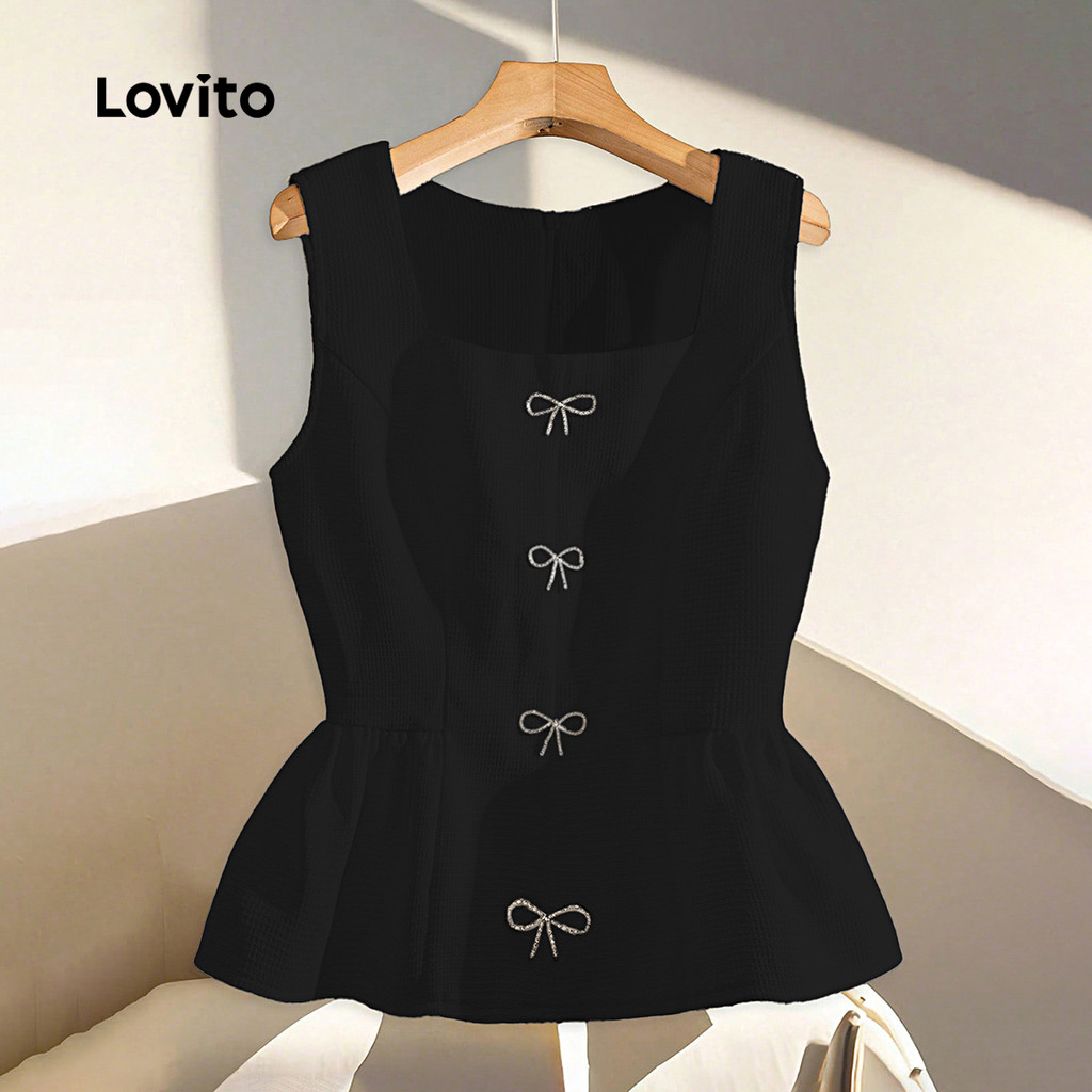 Lovito Casual Top Bow Primavera/verão Preto Top feminino LK2AD1102