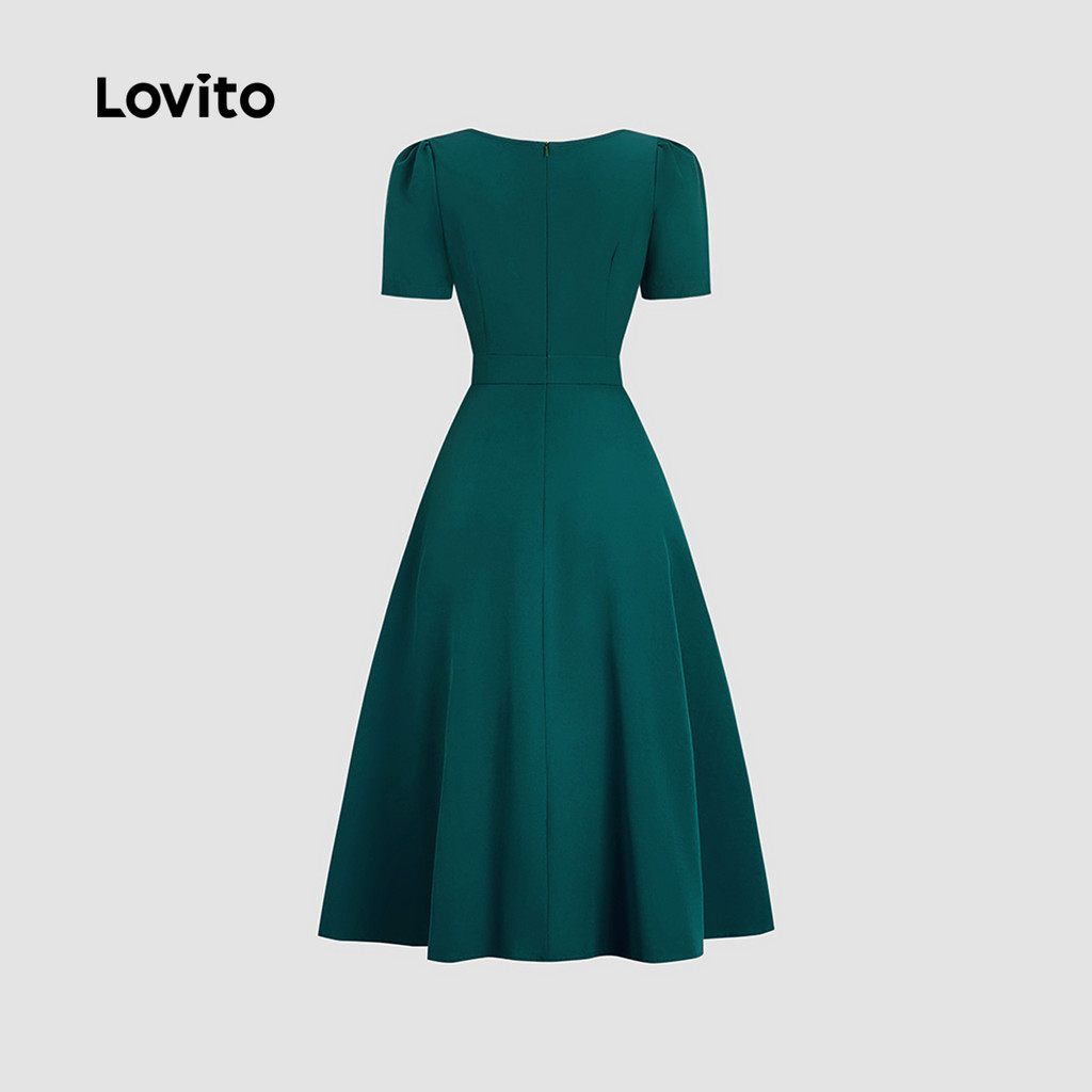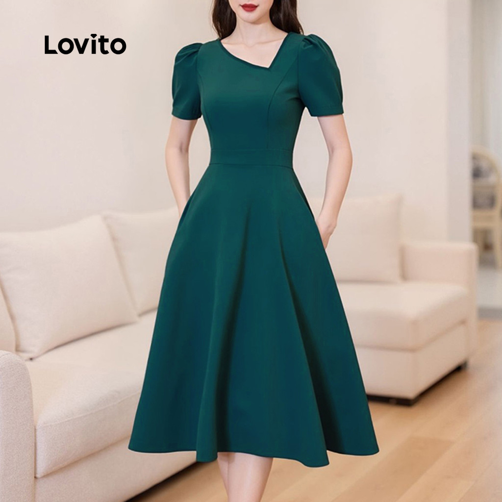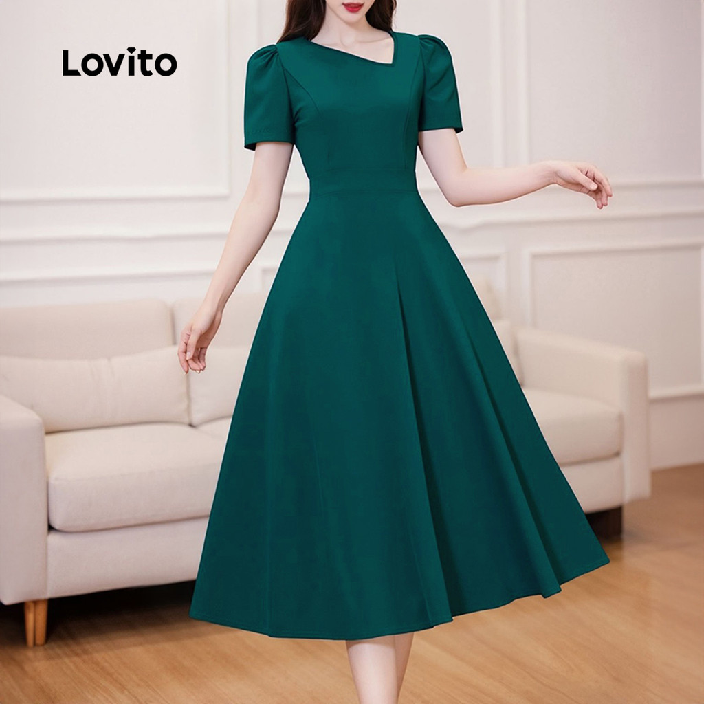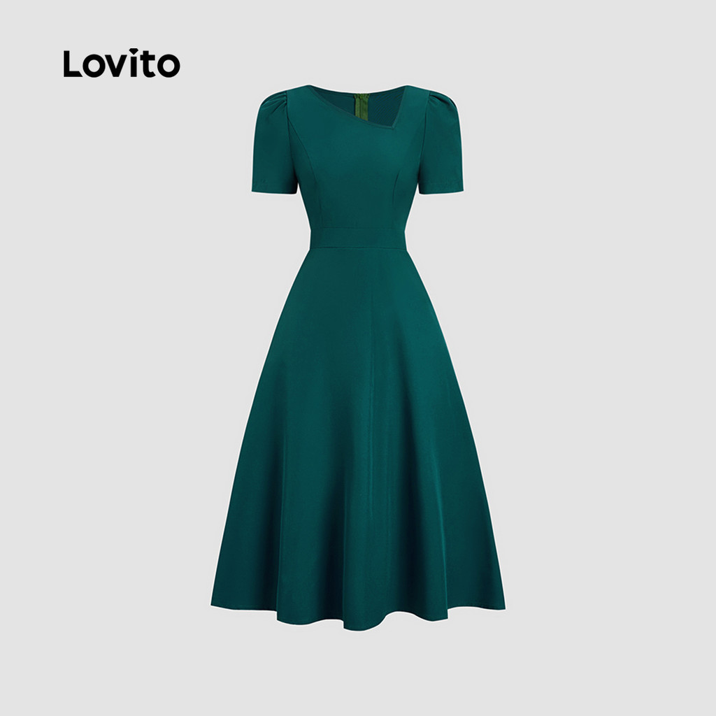 Lovito Vestido Elegante Assimétrico Clássico e Versátil Vestido Teal Primavera/verão para Mulheres LBL33120