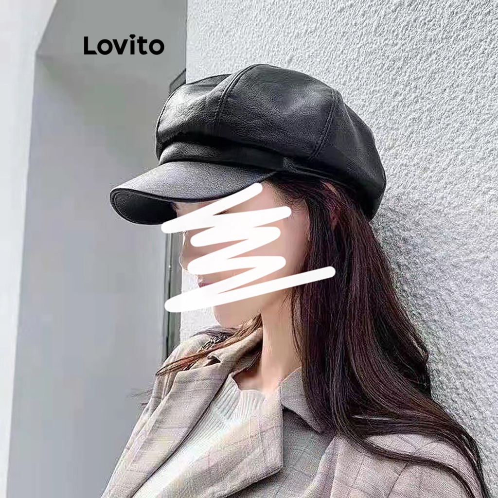 Lovito Chapéu Feminino Pu Clássico Estilo Antigo LFA08242 (Preto)