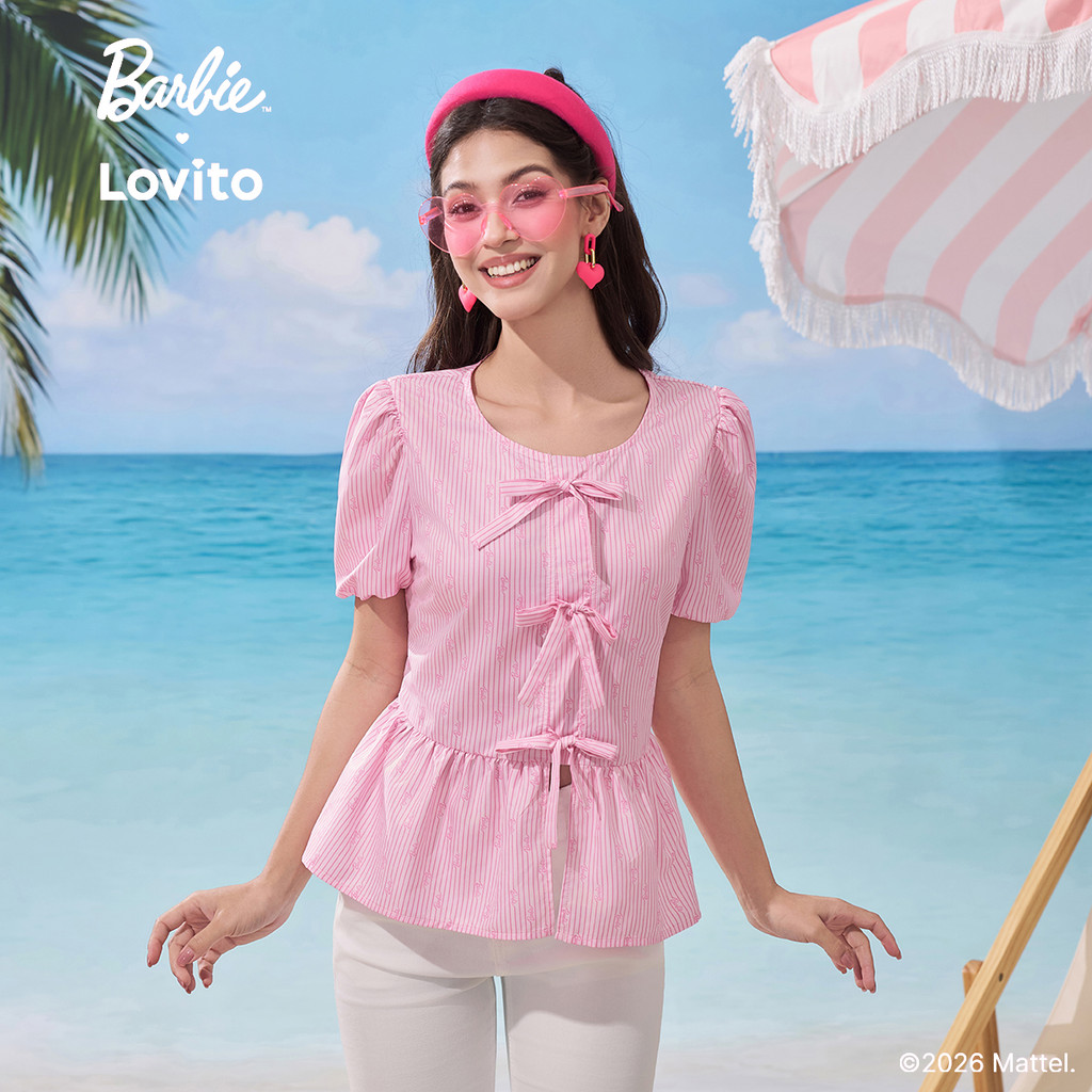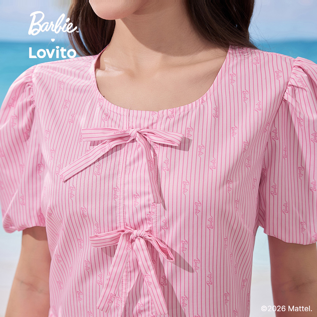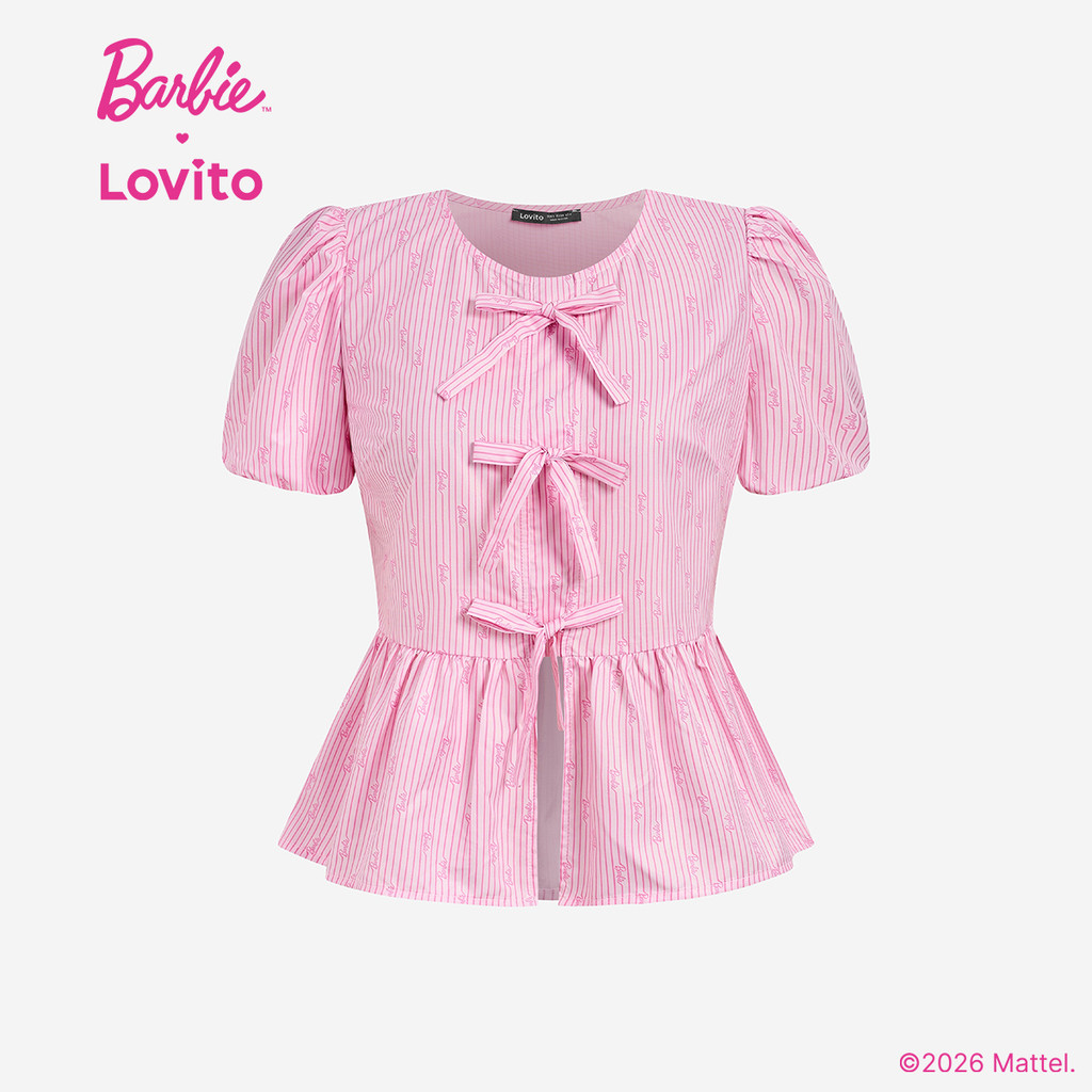 Barbie™ X Lovito Blusa Casual com Laço Frontal Primavera/verão Blusa Rosa para Mulheres LB1AD039