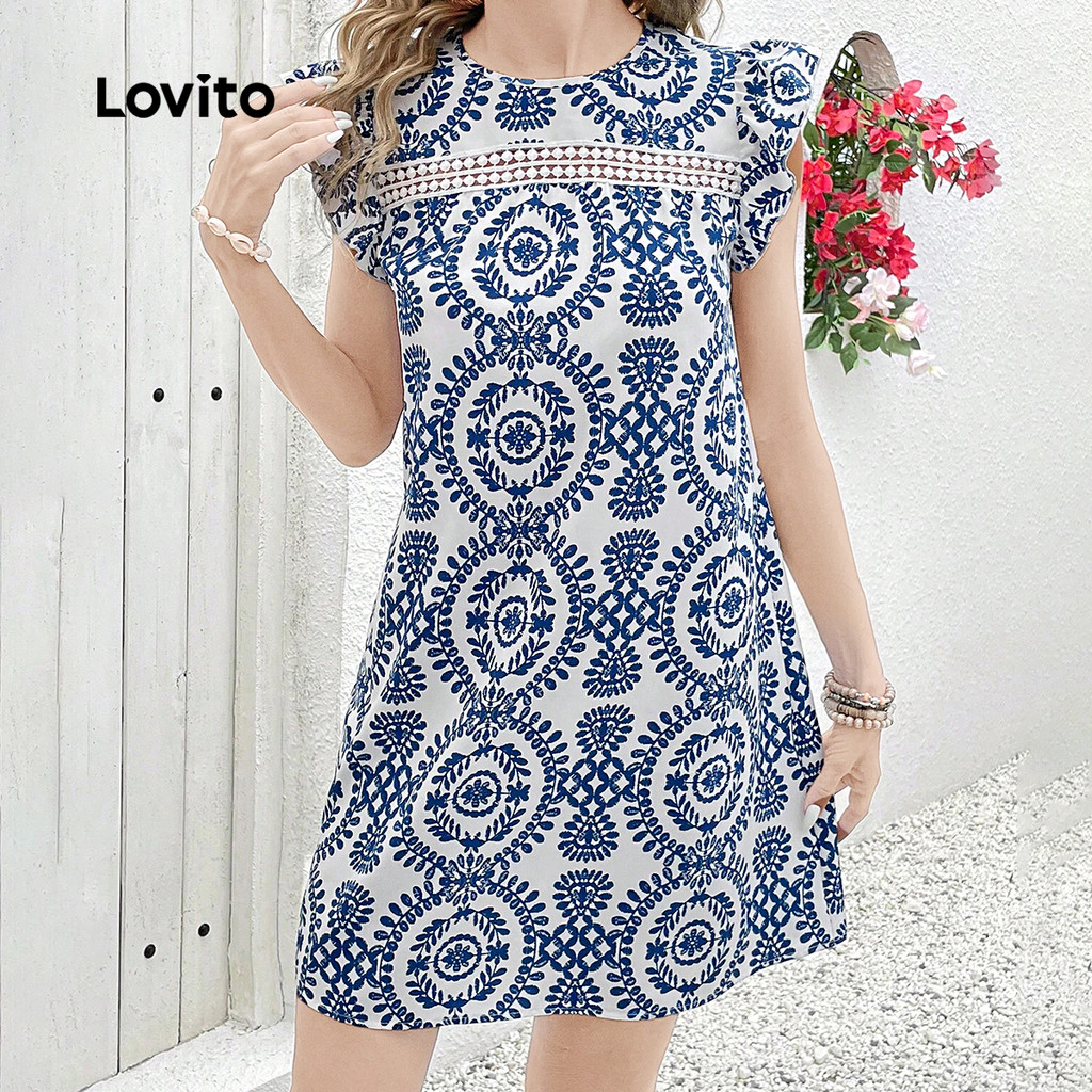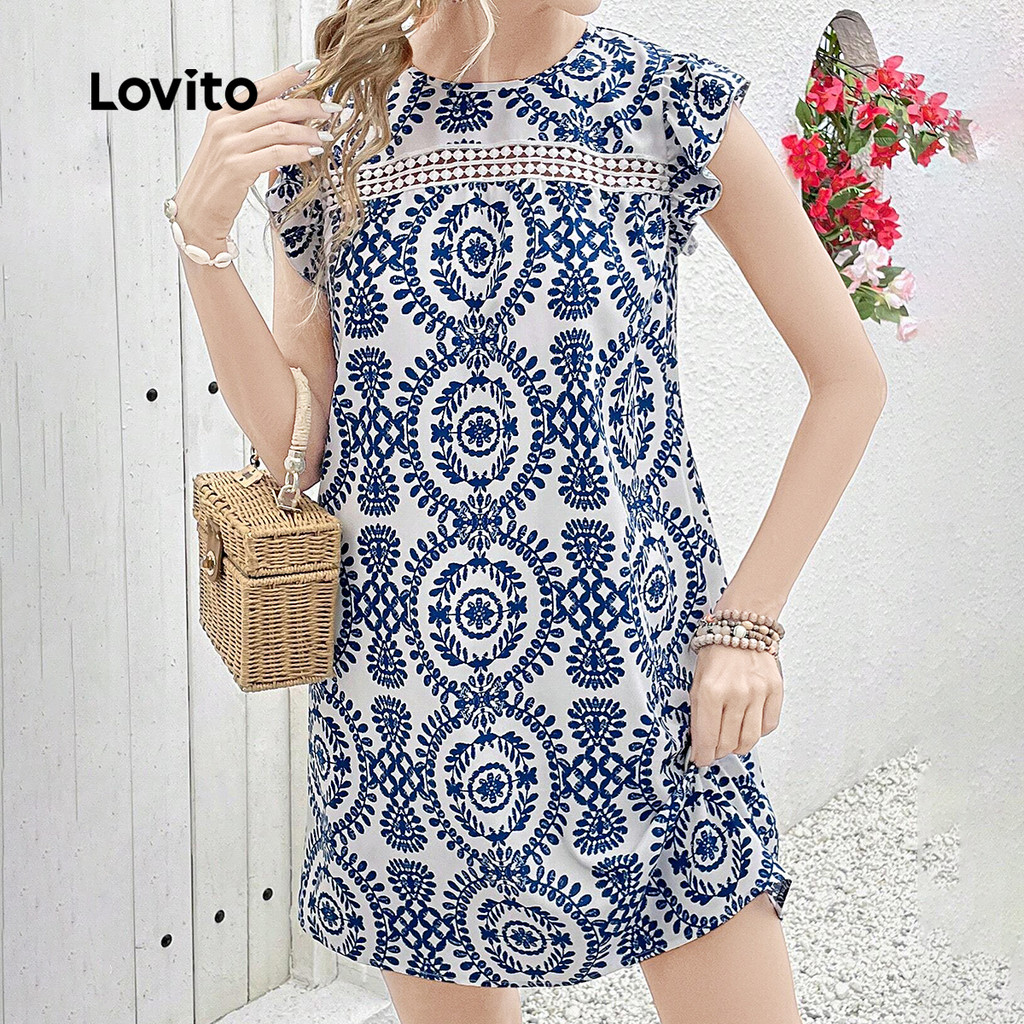 Lovito Vestido Boho com babados e decote em viagem vestido primavera/verão para mulheres LK3ED600