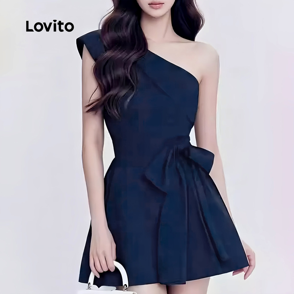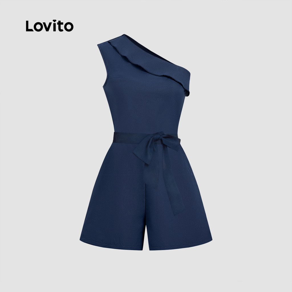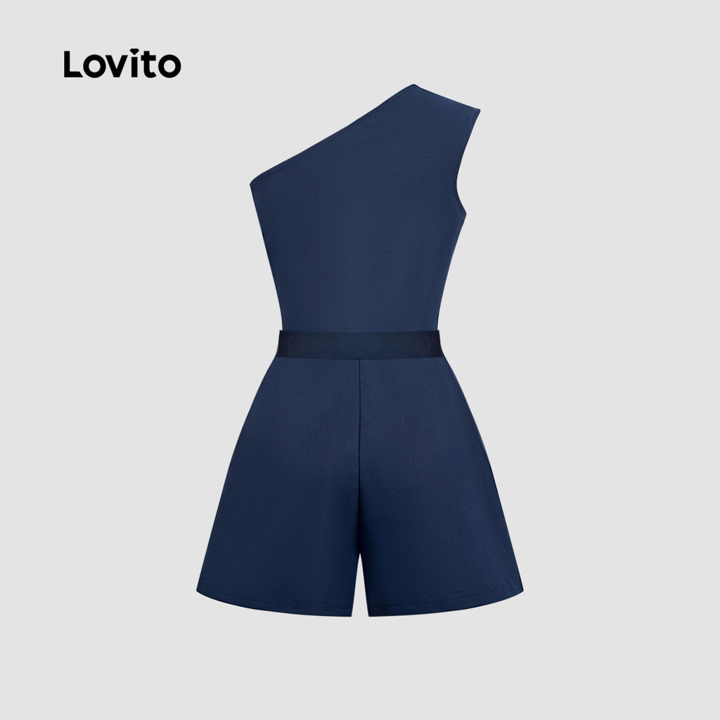Lovito Macacão Feminino Azul Marinho Assimétrico Com Amarração Para Festas E Primavera Verão L165ED1453