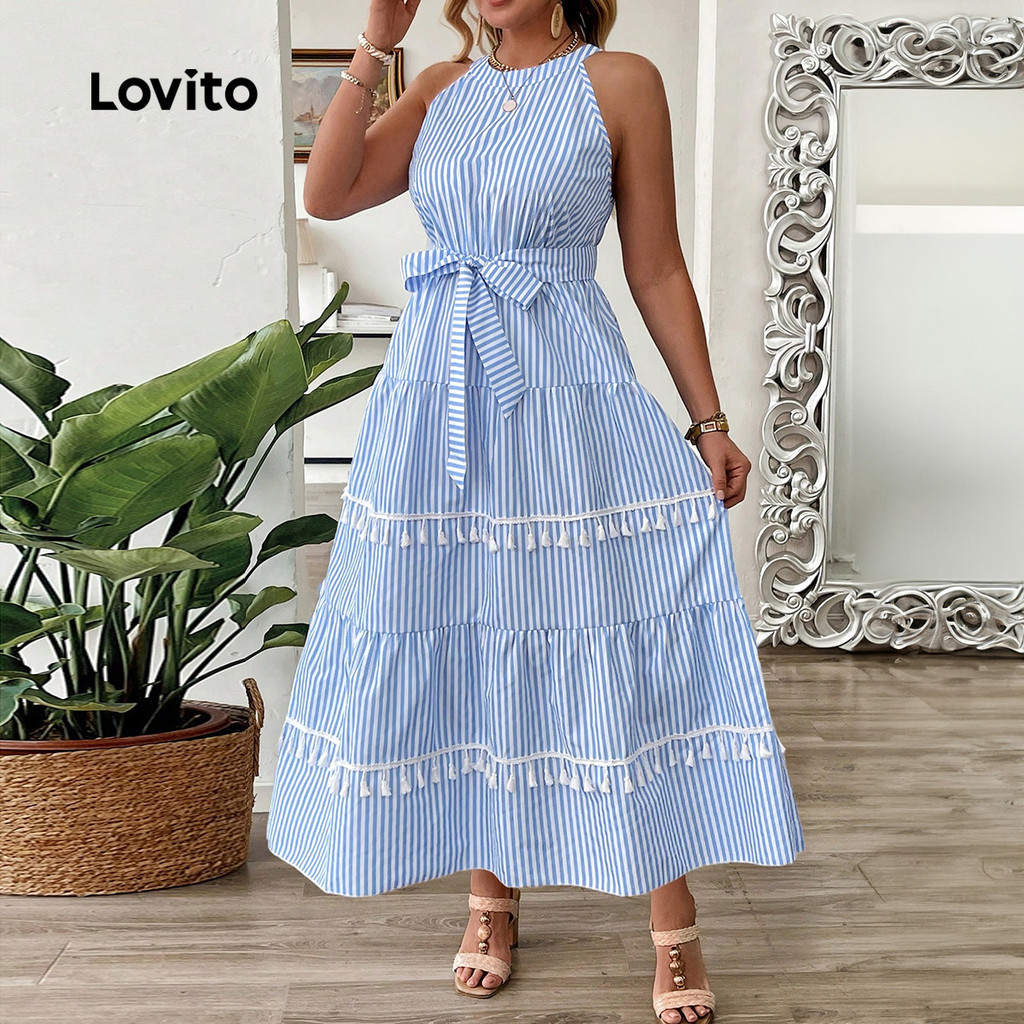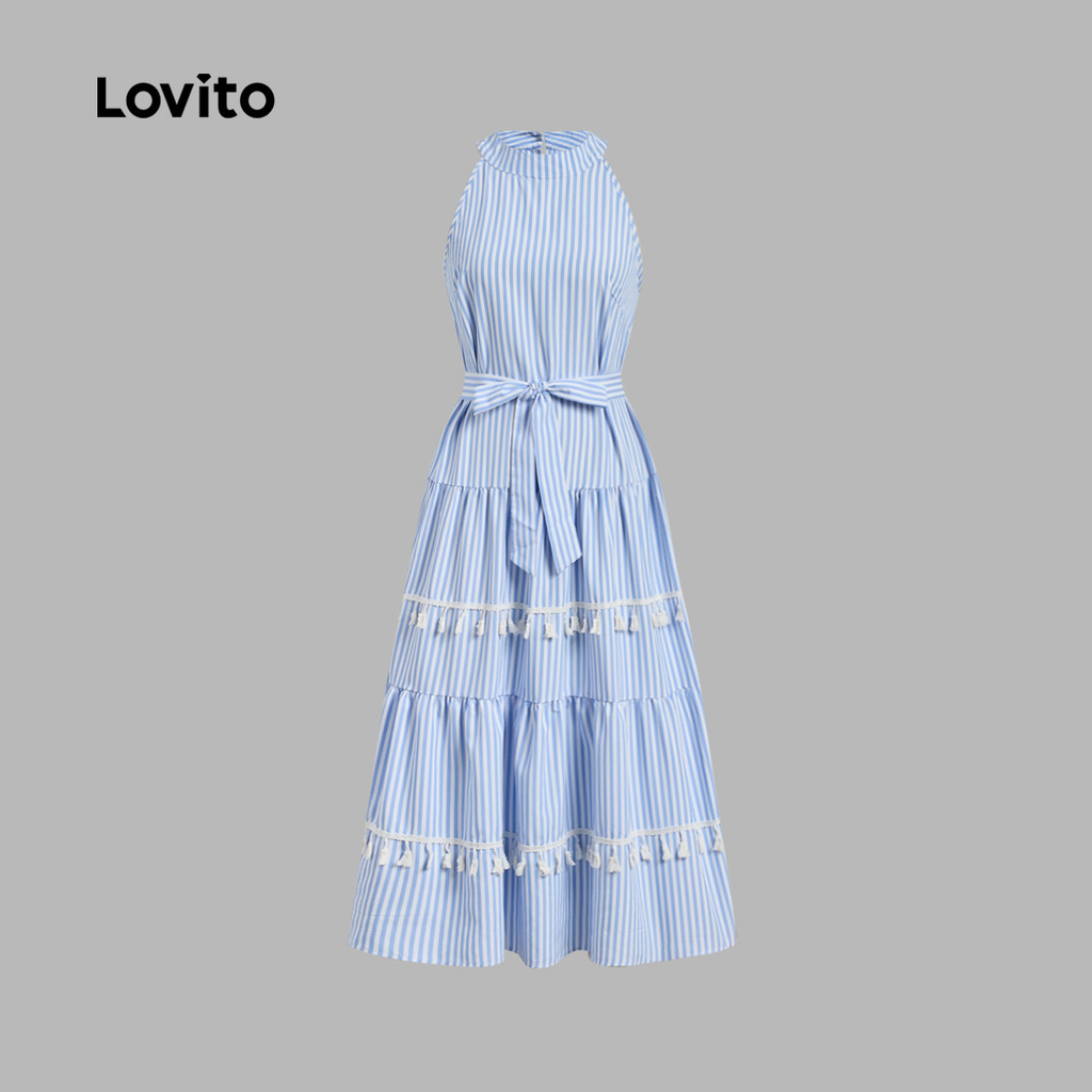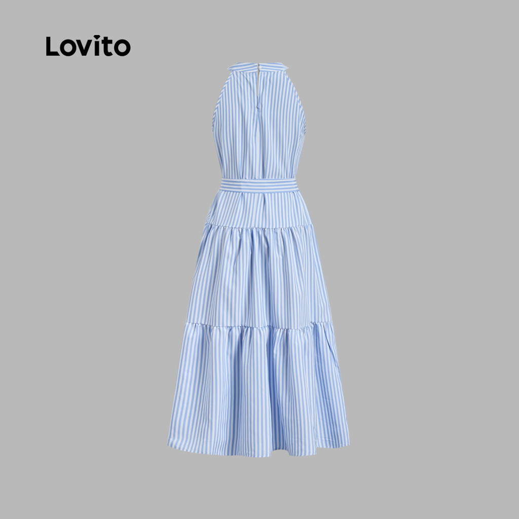 Lovito Vestido Casual com Cinto para Primavera/verão Azul para Mulheres LK2LD224
