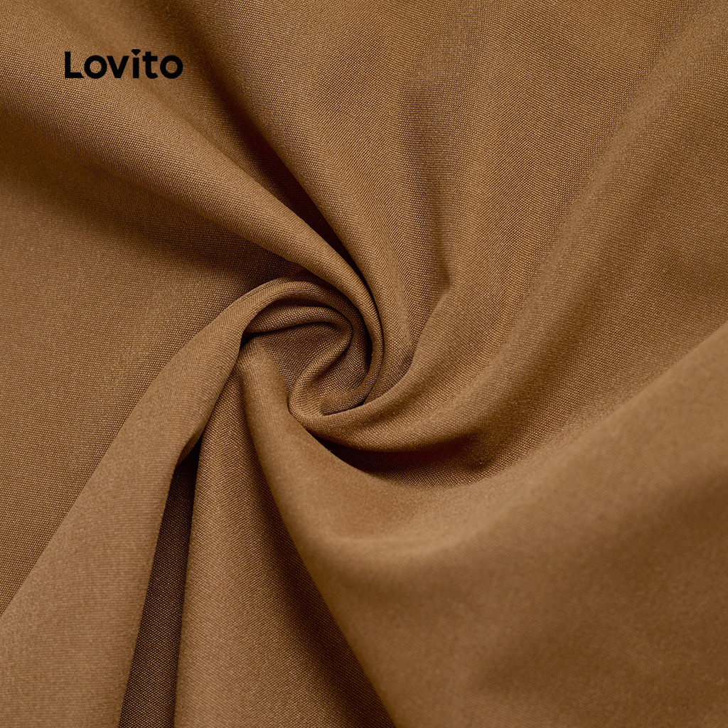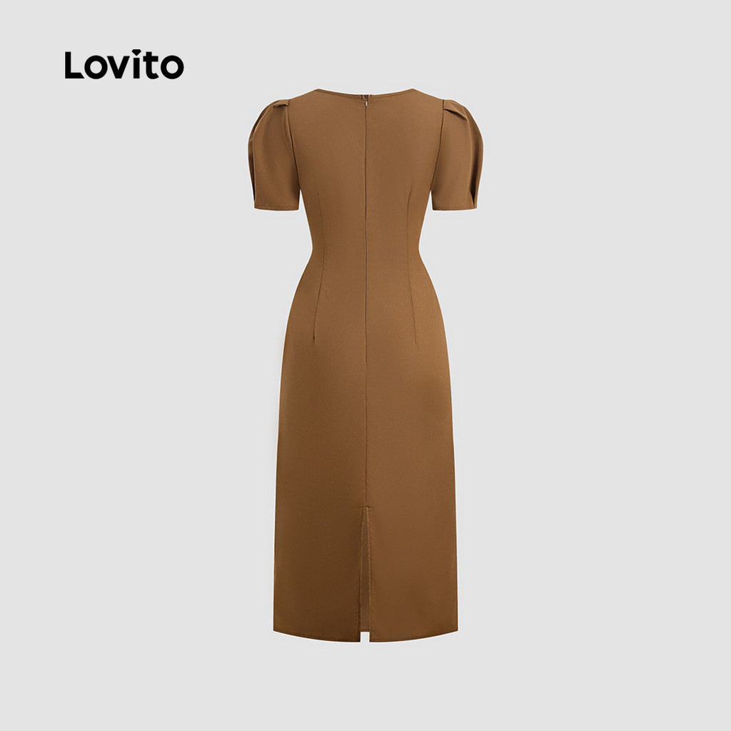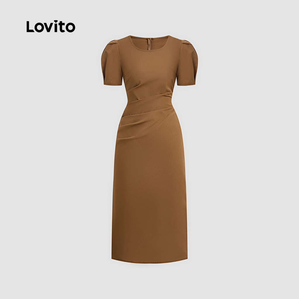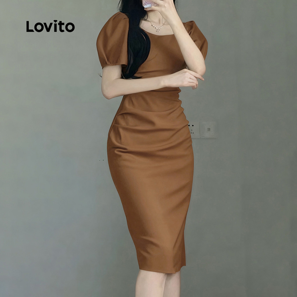 Lovito Vestido Elegante Marrom Com Mangas Bufantes Modelagem Justa E Pregas Primavera/verão Para Mulheres L155ED138