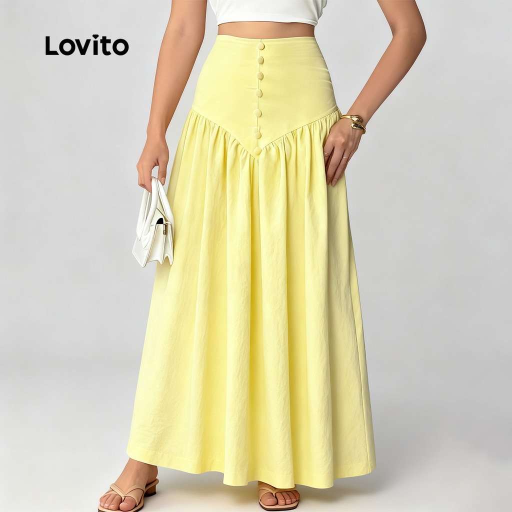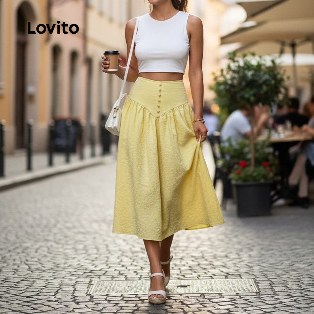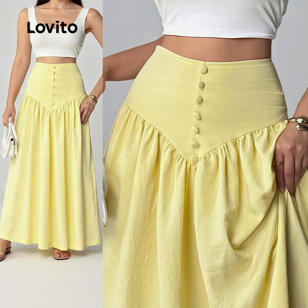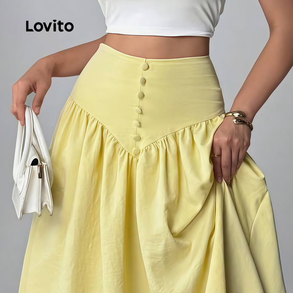 Lovito Saias Casuais com Zíper Primavera/Verão Amarelas Femininas L167LD086