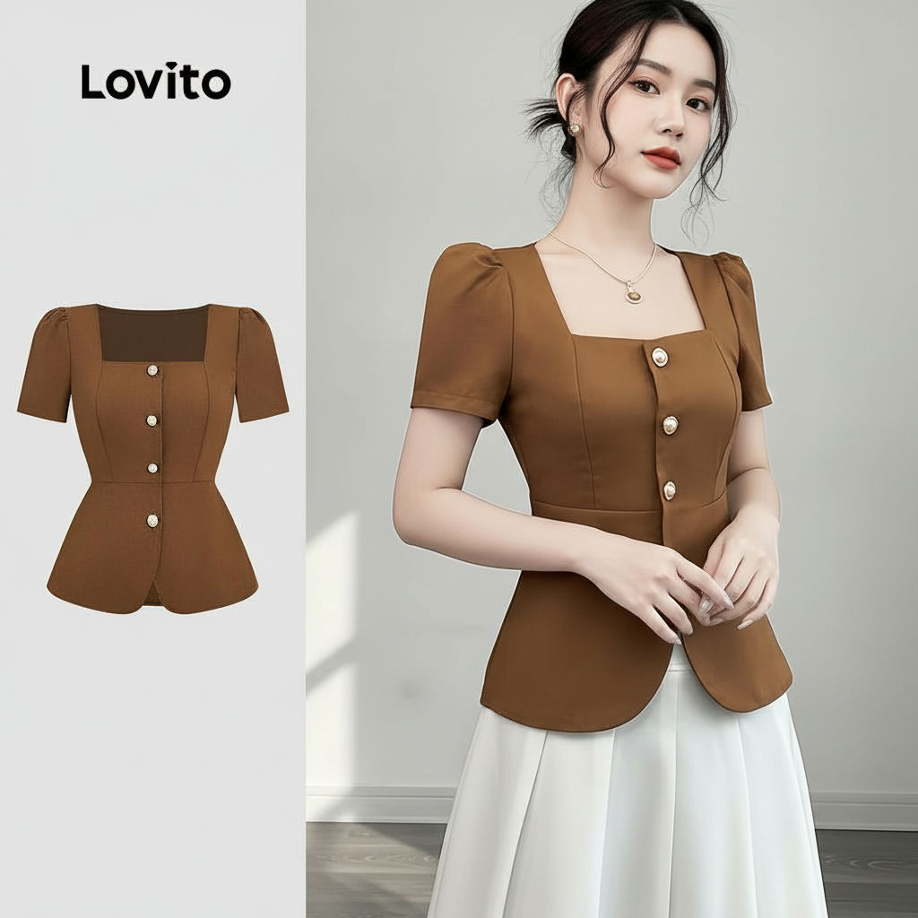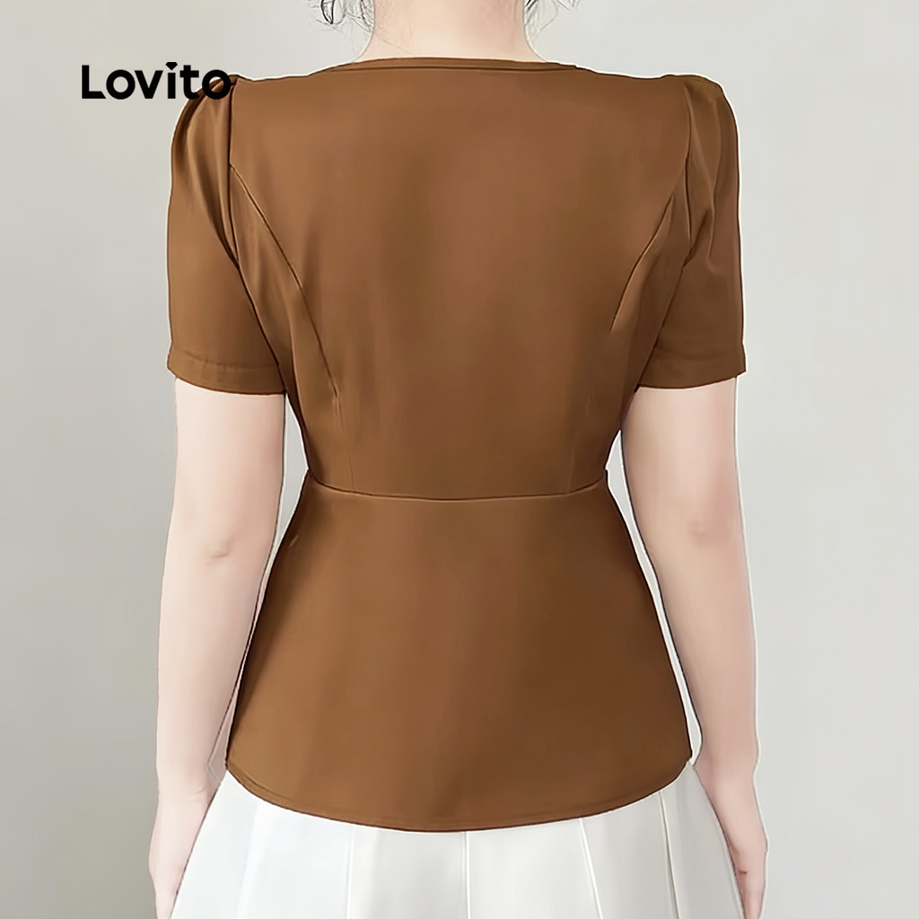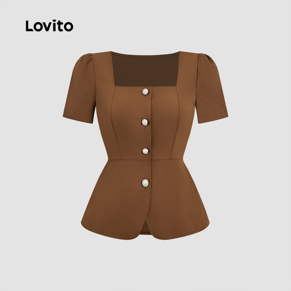 Lovito Blusa Feminina Marrom Botões Primavera Verão Elegante L165ED955