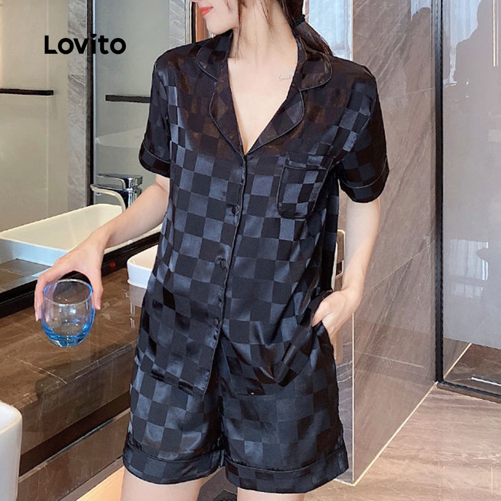 Lovito Conjunto Pijama 2 Peças Seda Gelada Moda Coreana Quarto Ar Condicionado LNE130217