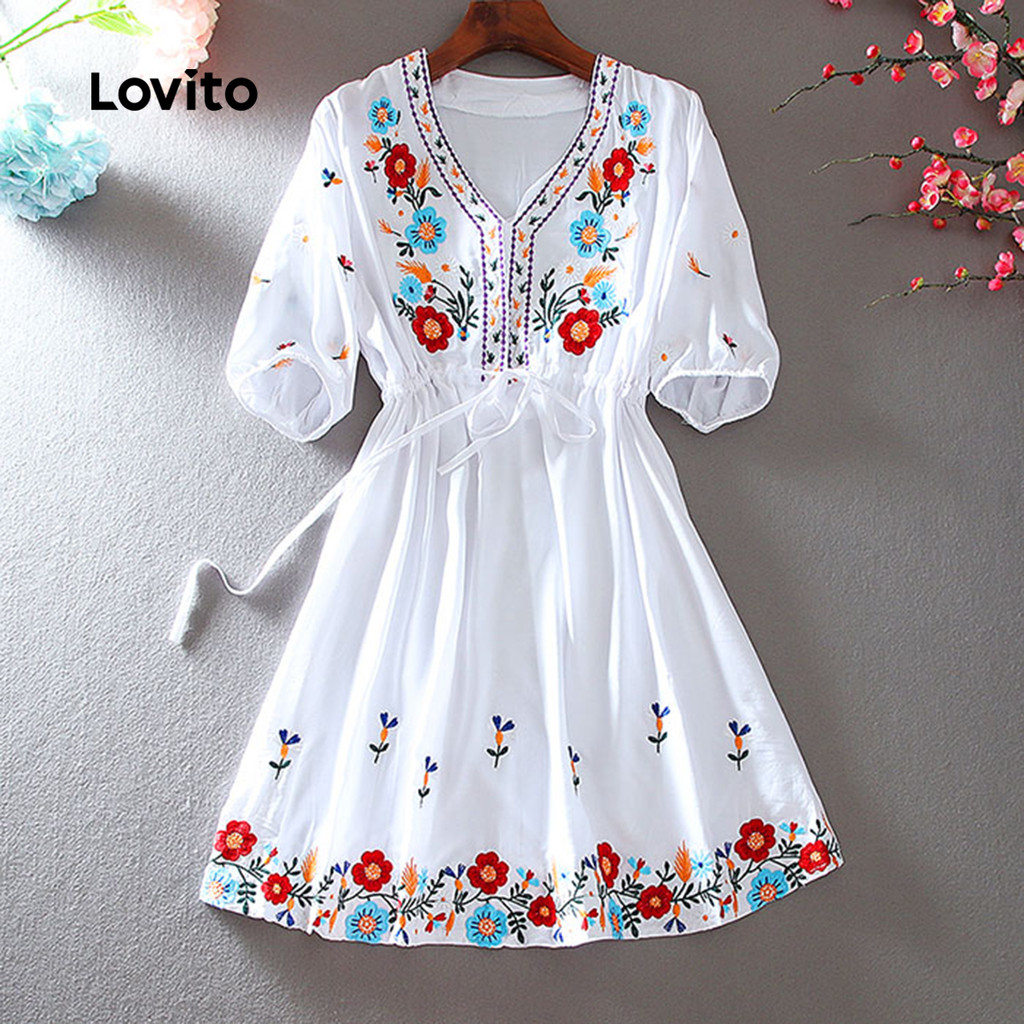 Lovito Vestido Feminino Elegante para Verão Branco LK2AD1079