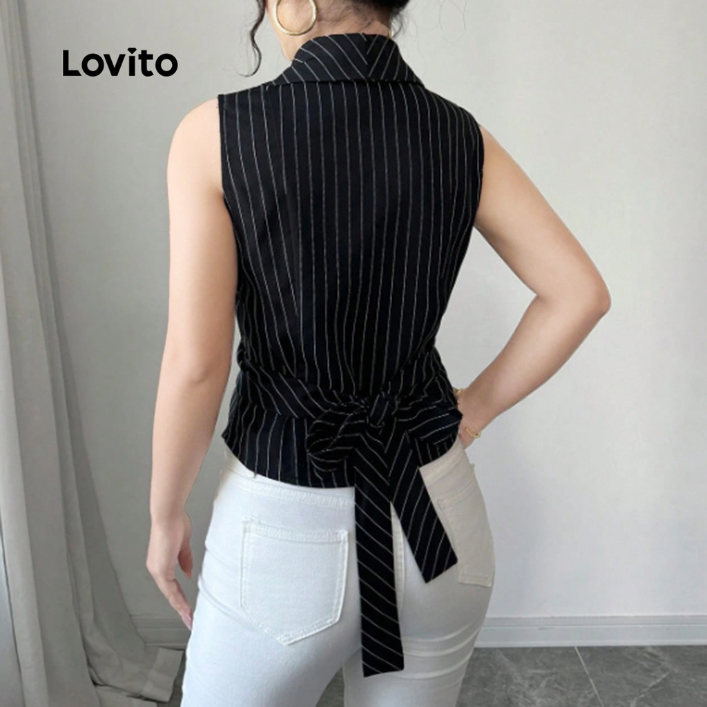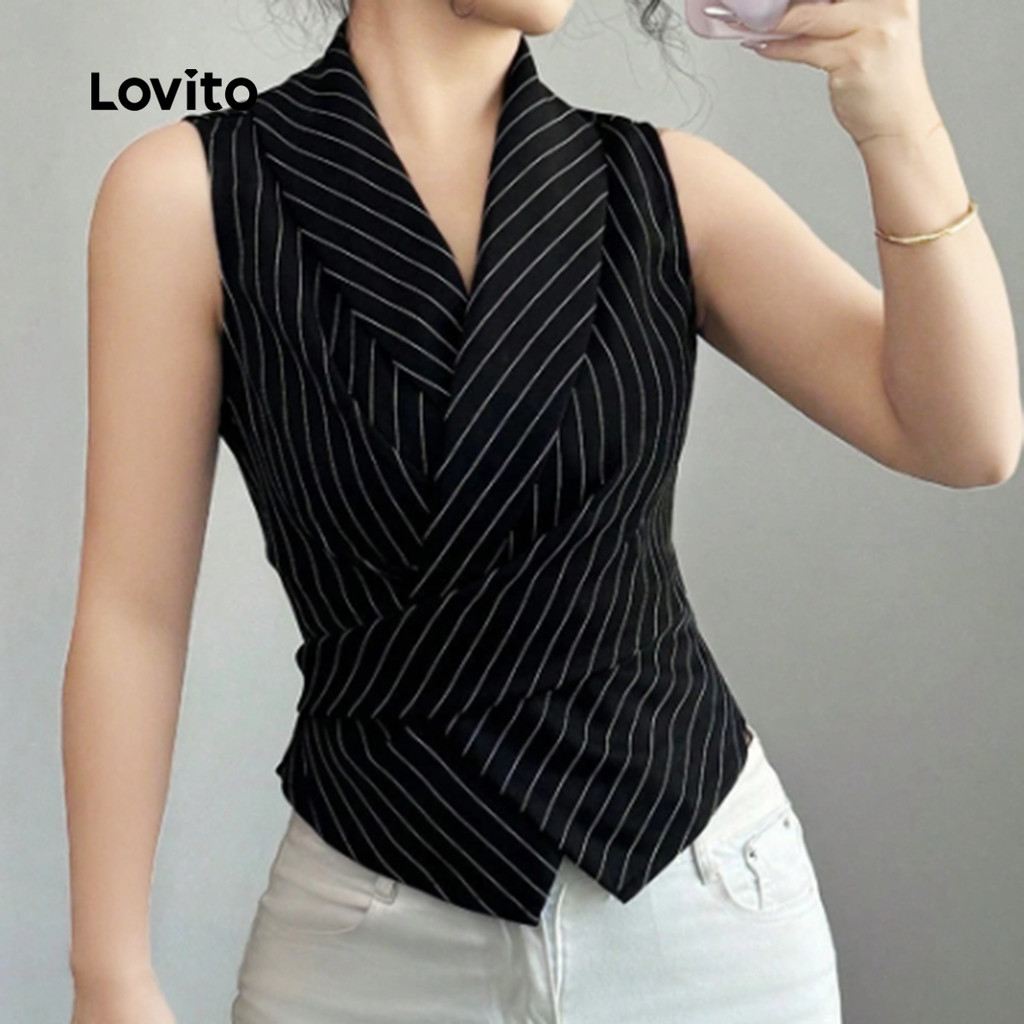 Lovito Top Elegante Assimétrico Preto para Lazer feminino L171AD022