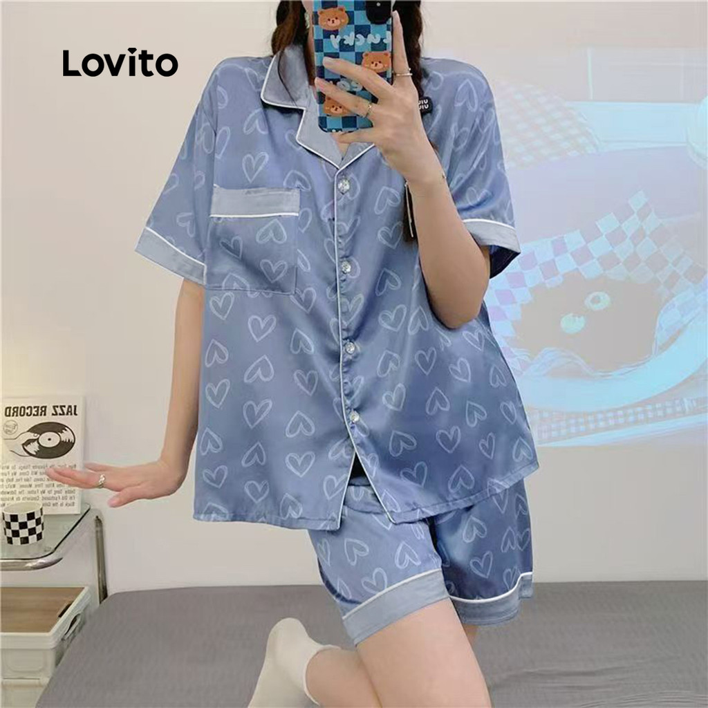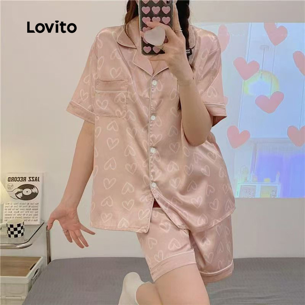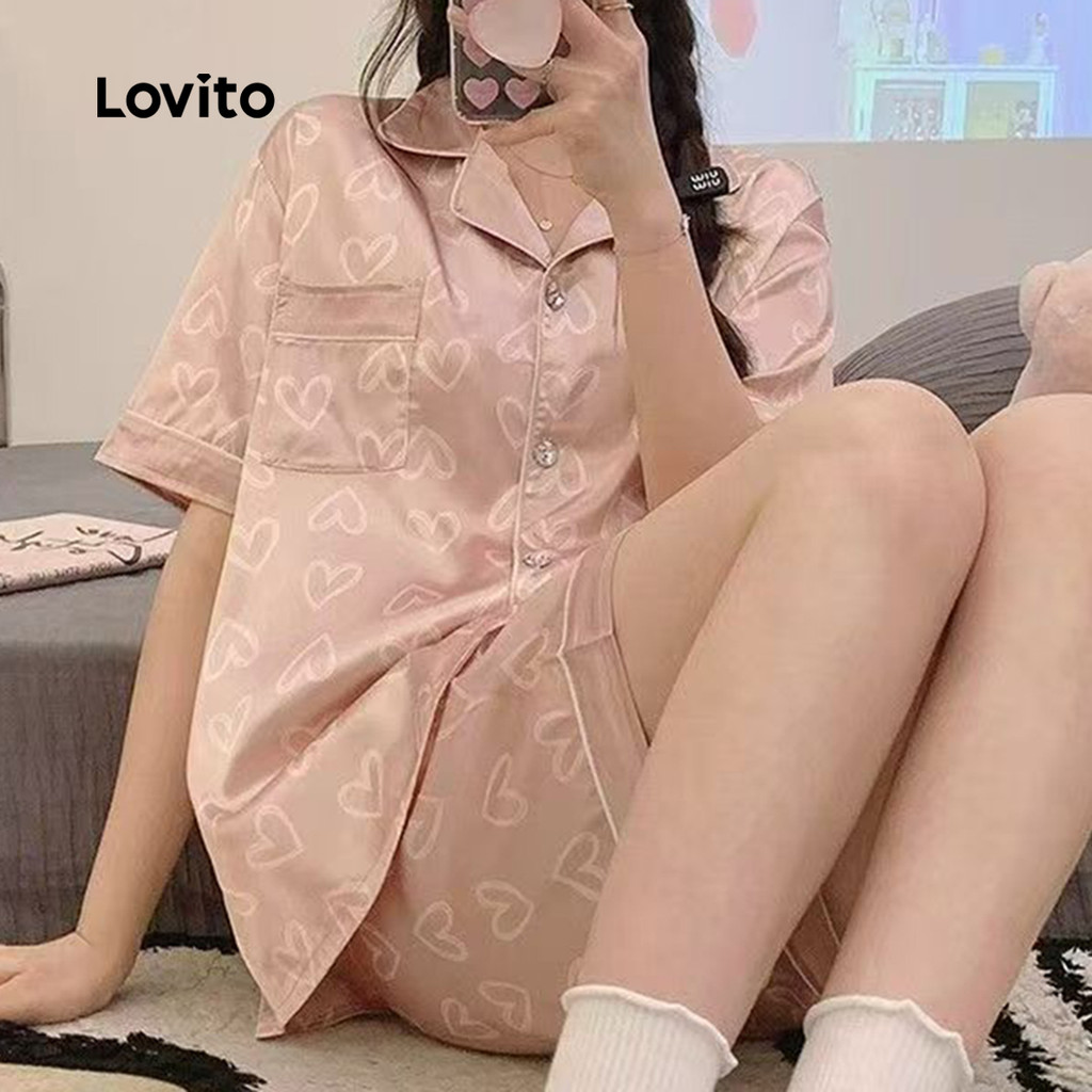 Lovito Conjunto De Pijama Elegante De Duas Peças Estilo Coreano Para Usar Em Casa Primavera/verão Mulheres LNE130218