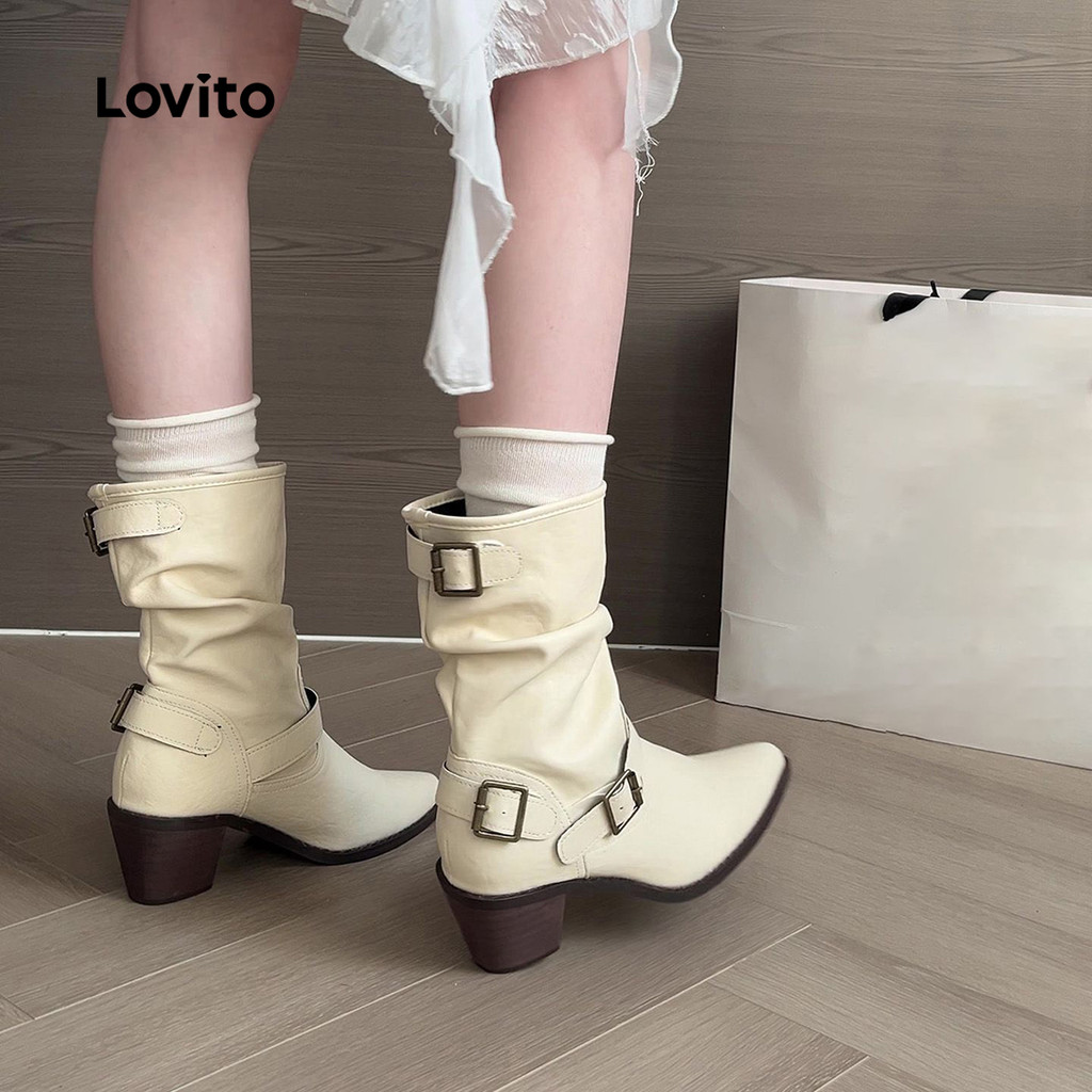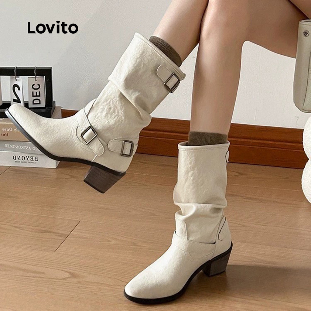 Lovito Botas Elegantes com Fivela de Metal para mulheres LFA103124