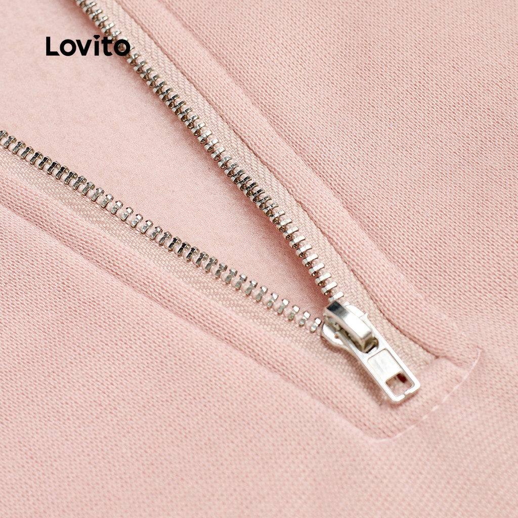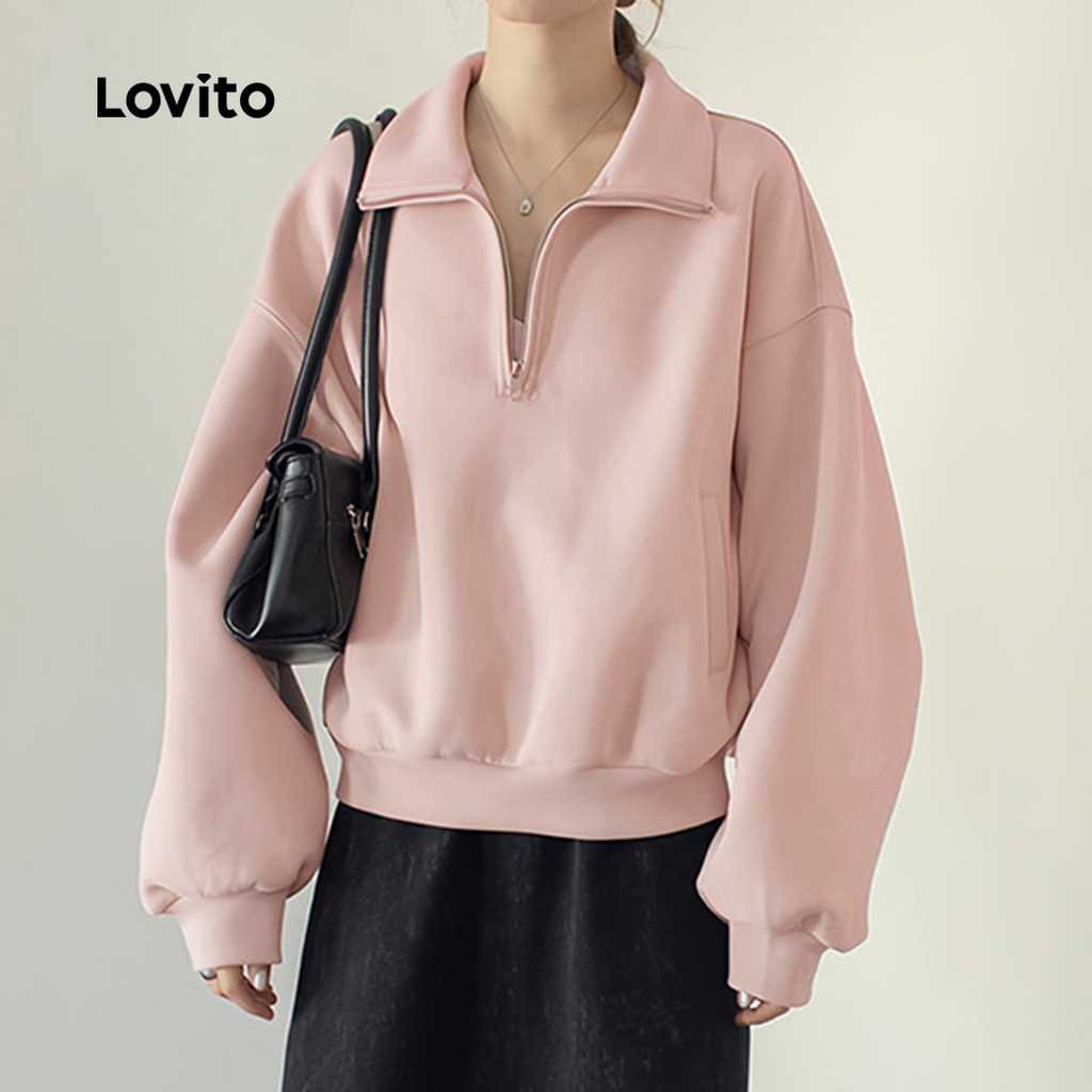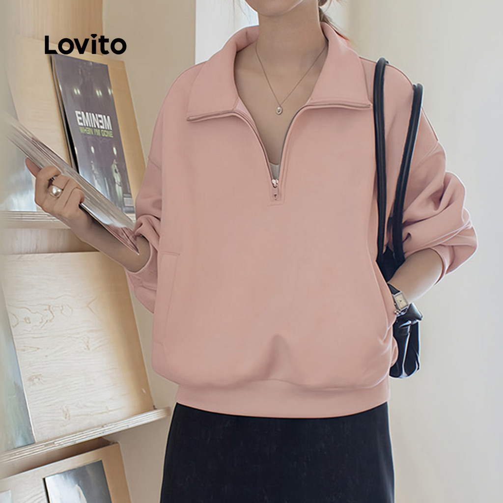 Lovito Casual Blusa de Manga Longa com Zíper e Bolso Outono/inverno Blusa Rosa para mulheres L159AD356
