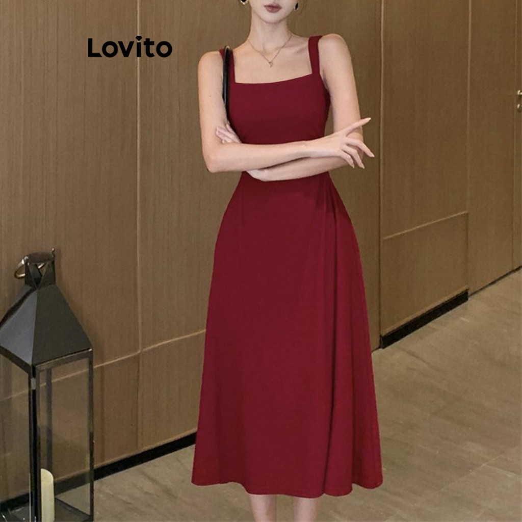 Lovito Vestido Feminino Elegante Liso Plissado LNM83179\4