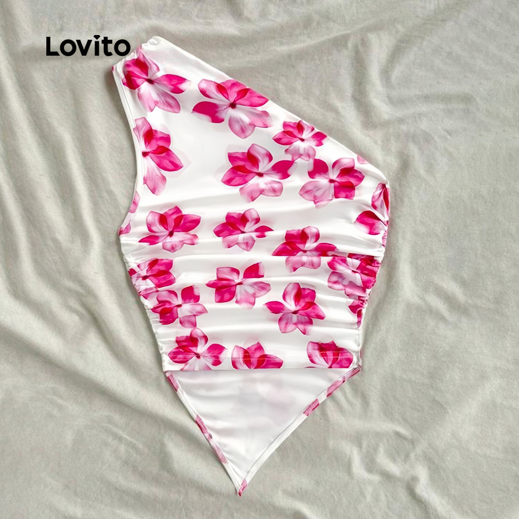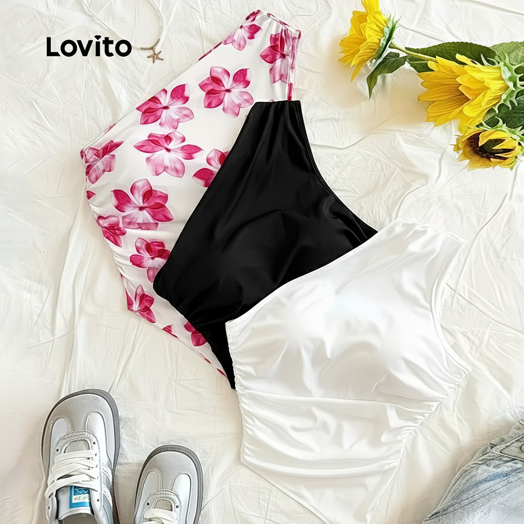 Lovito Casual Top 3 Peças Conjunto Padrão Assimétrico Primavera/verão Preto+off-white+rosa Top para mulheres LNE134100