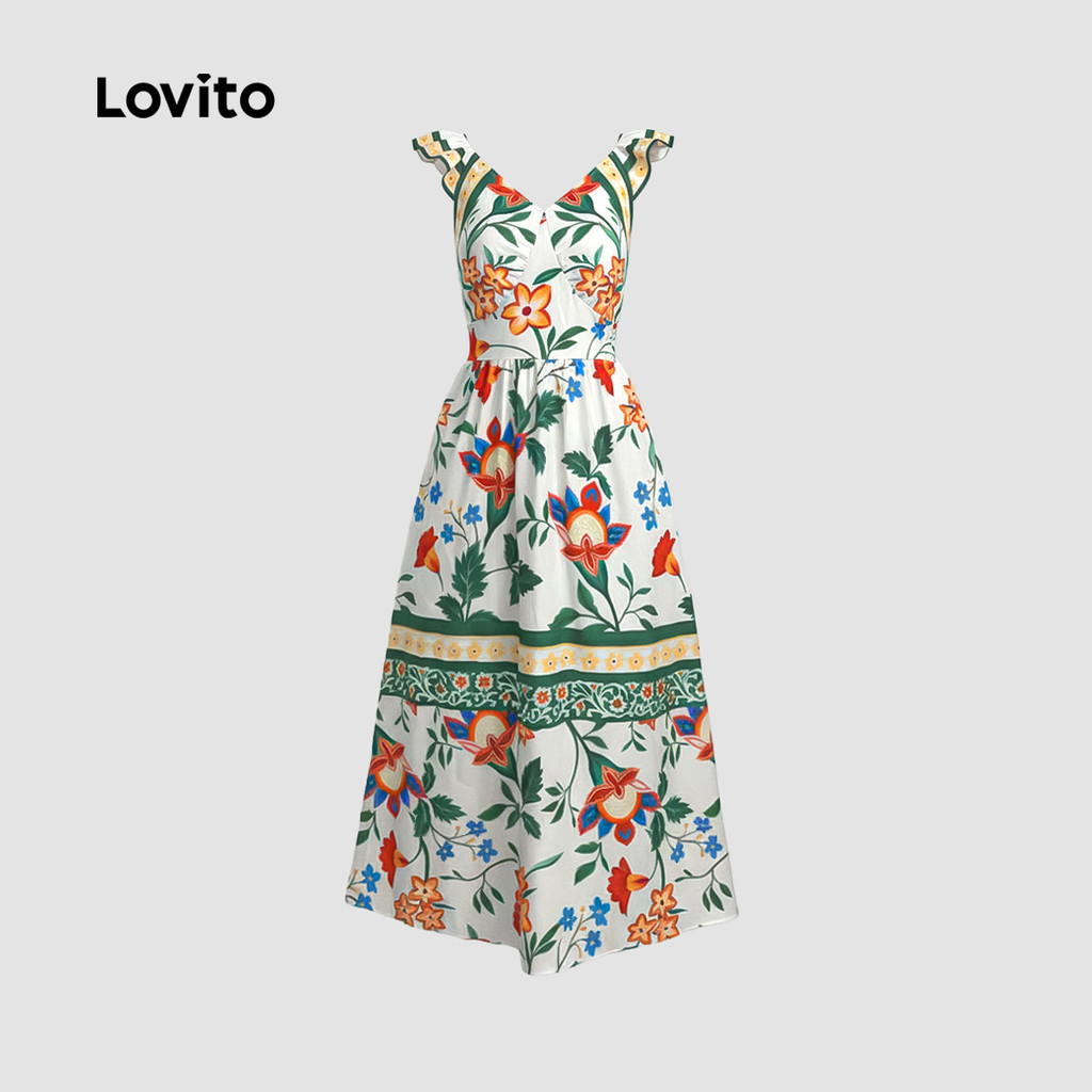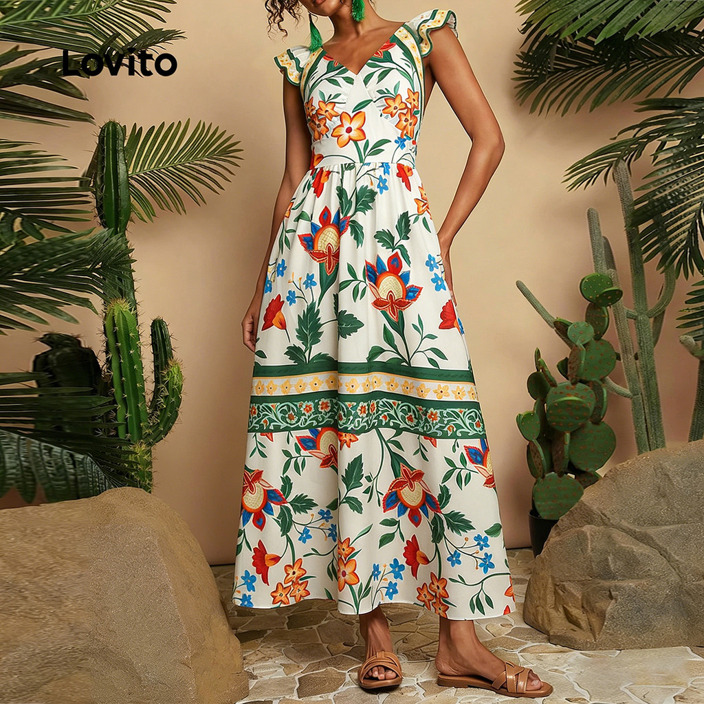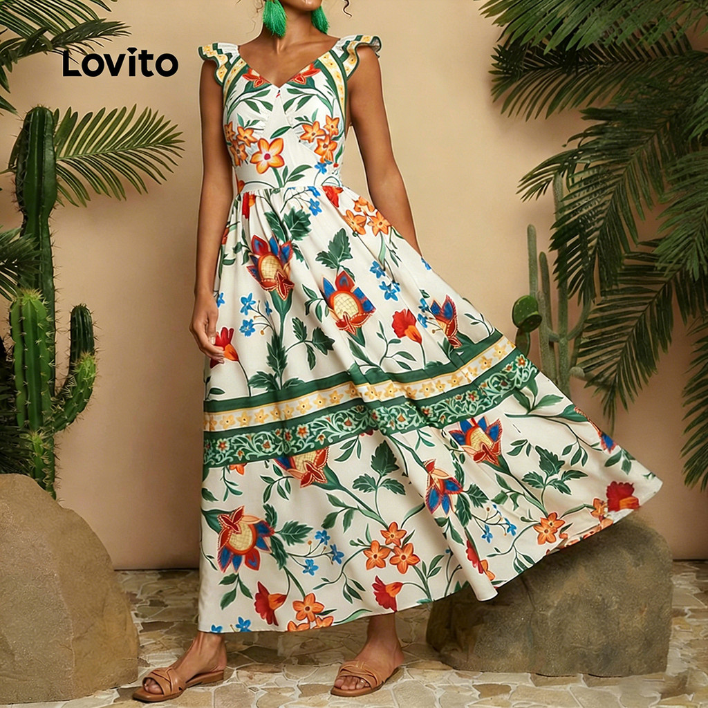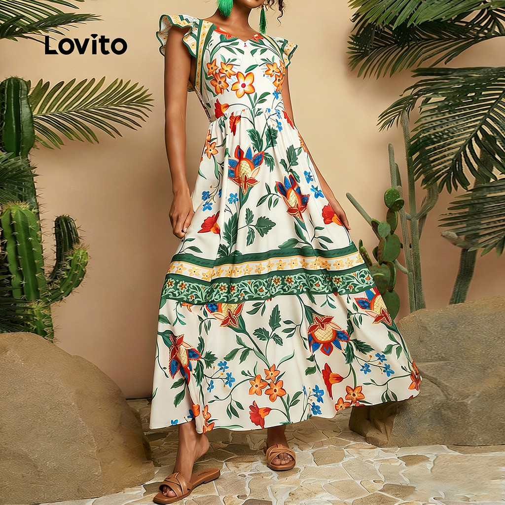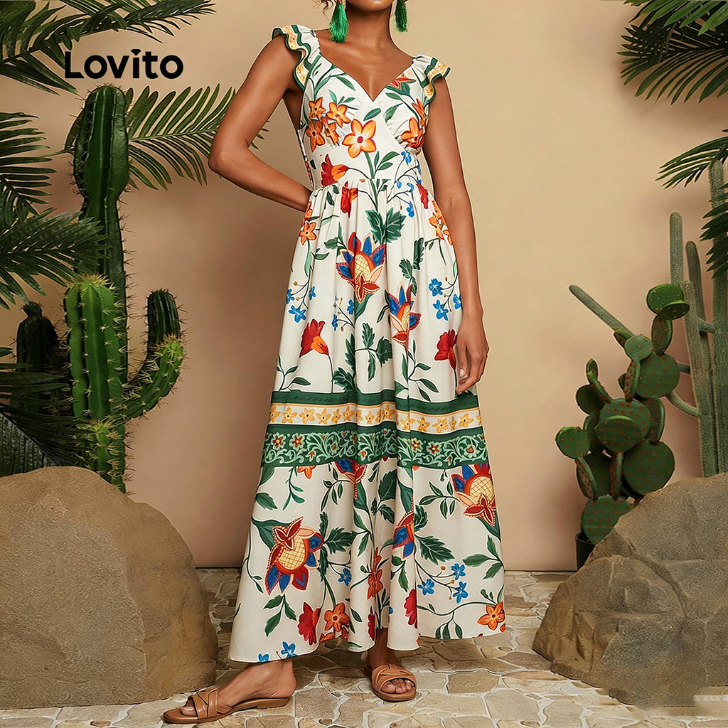 Lovito Vestido Boho com babados vestido primavera/verão para mulheres LK3LD397