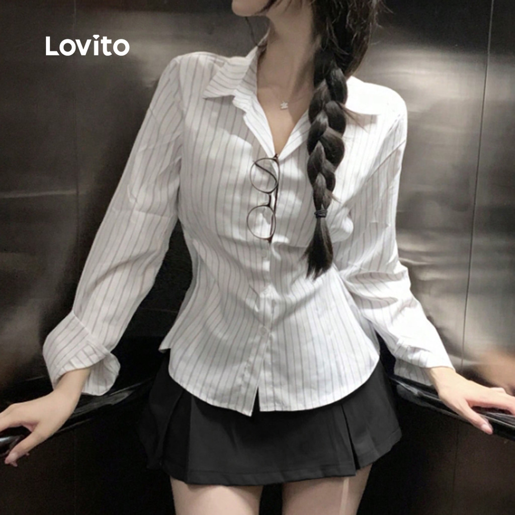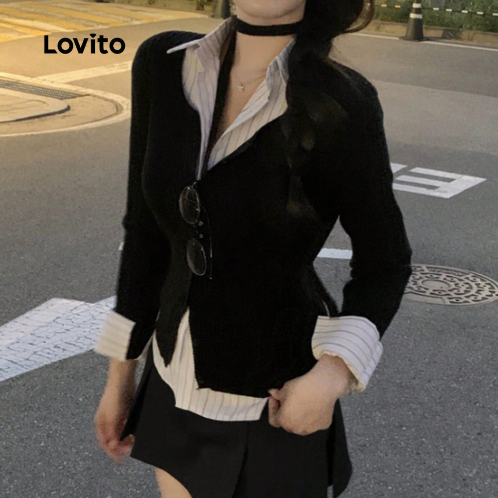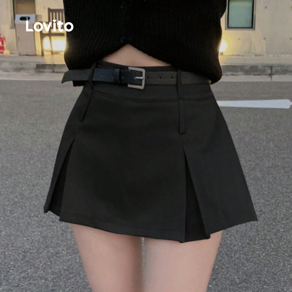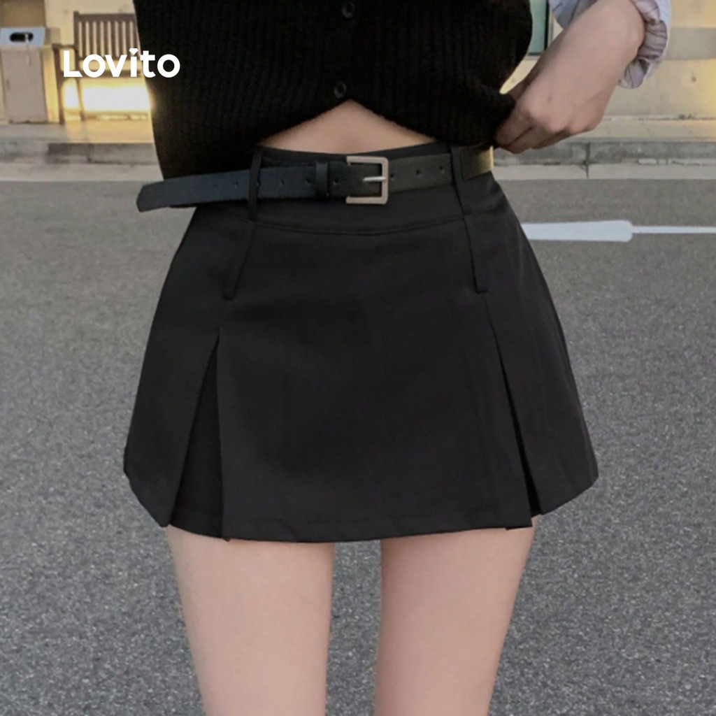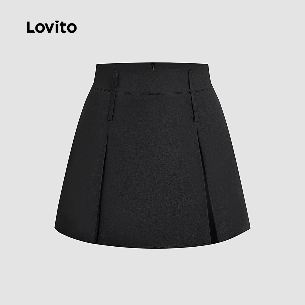 Lovito Saias Casuais Plissadas Primavera/verão Saias Pretas para Mulheres LK2AD463