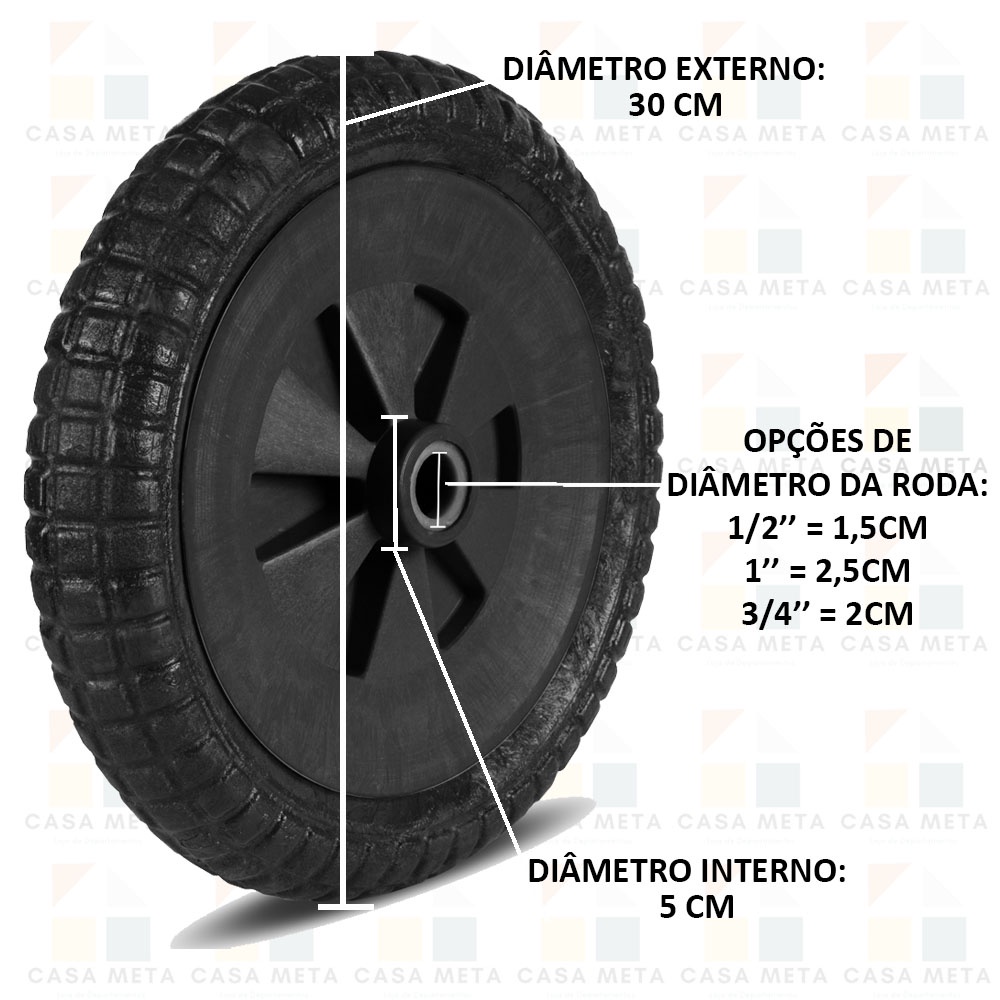 Pneu Roda 325x65 Flexível Para Carrinho De Mão Sem Câmara Resistente Eixo 1"
