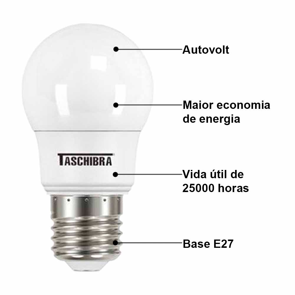 Kit 2 Lâmpada Led Bulbo Tkl 30 4,9w Taschibra Base E27 Autovolt