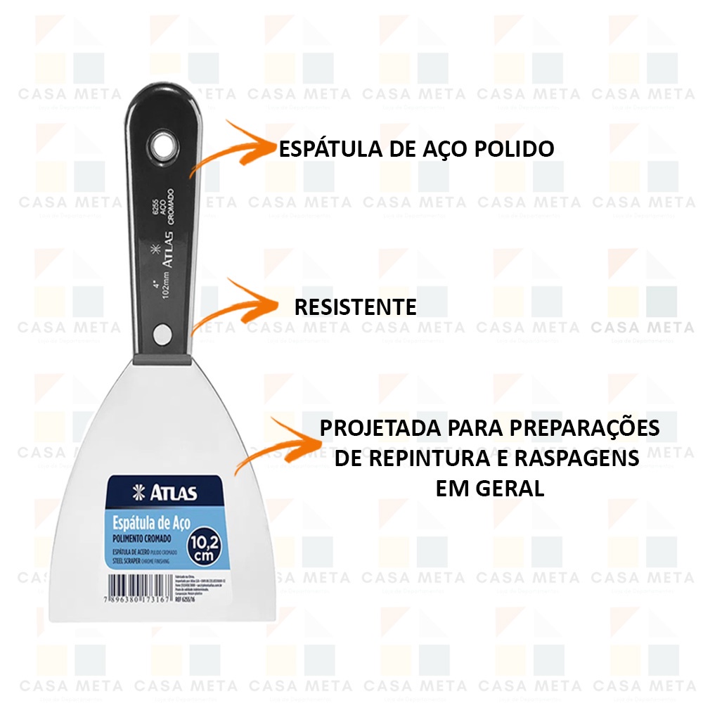 Espatula Massa Gesso Aço Cromado 10,2cm 4 Atlas
