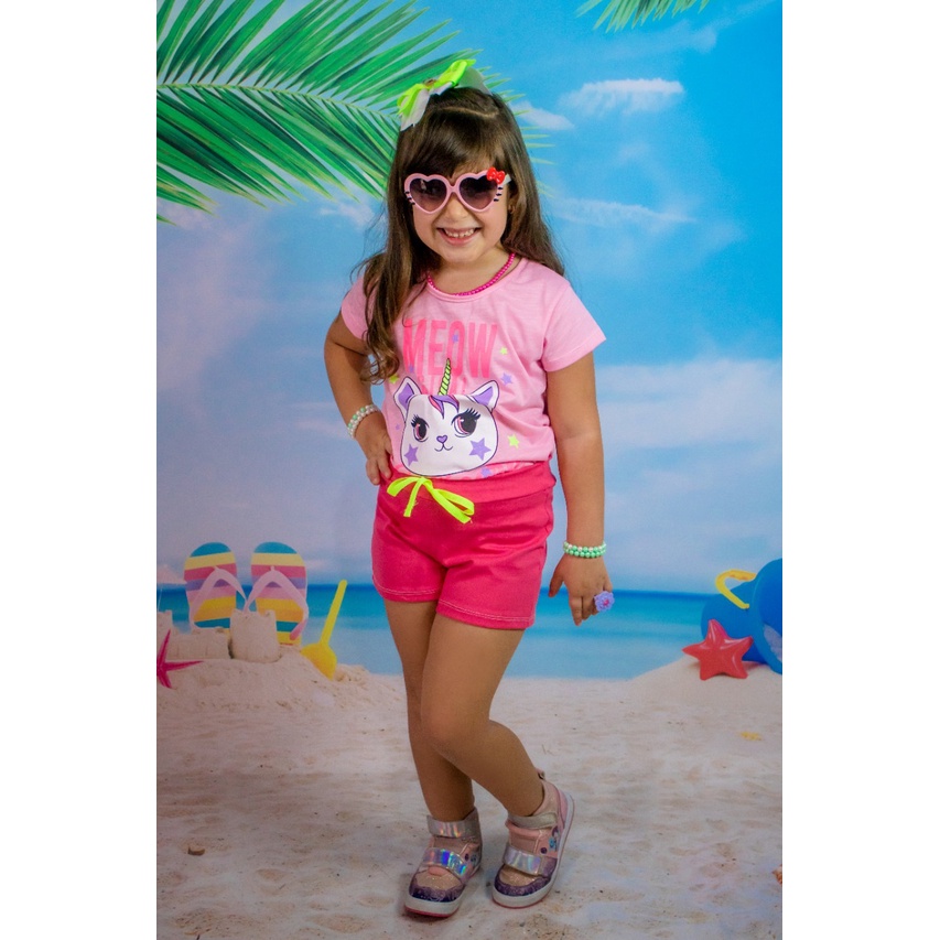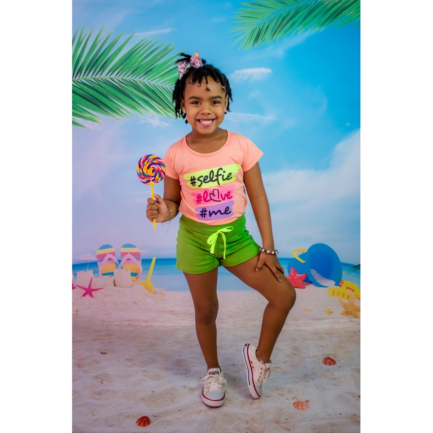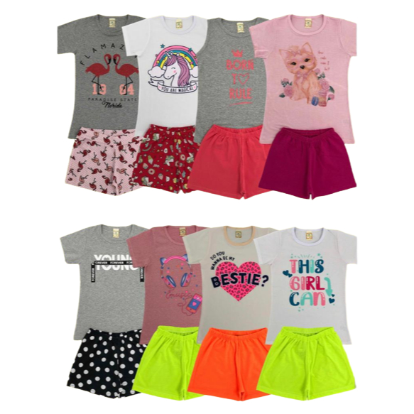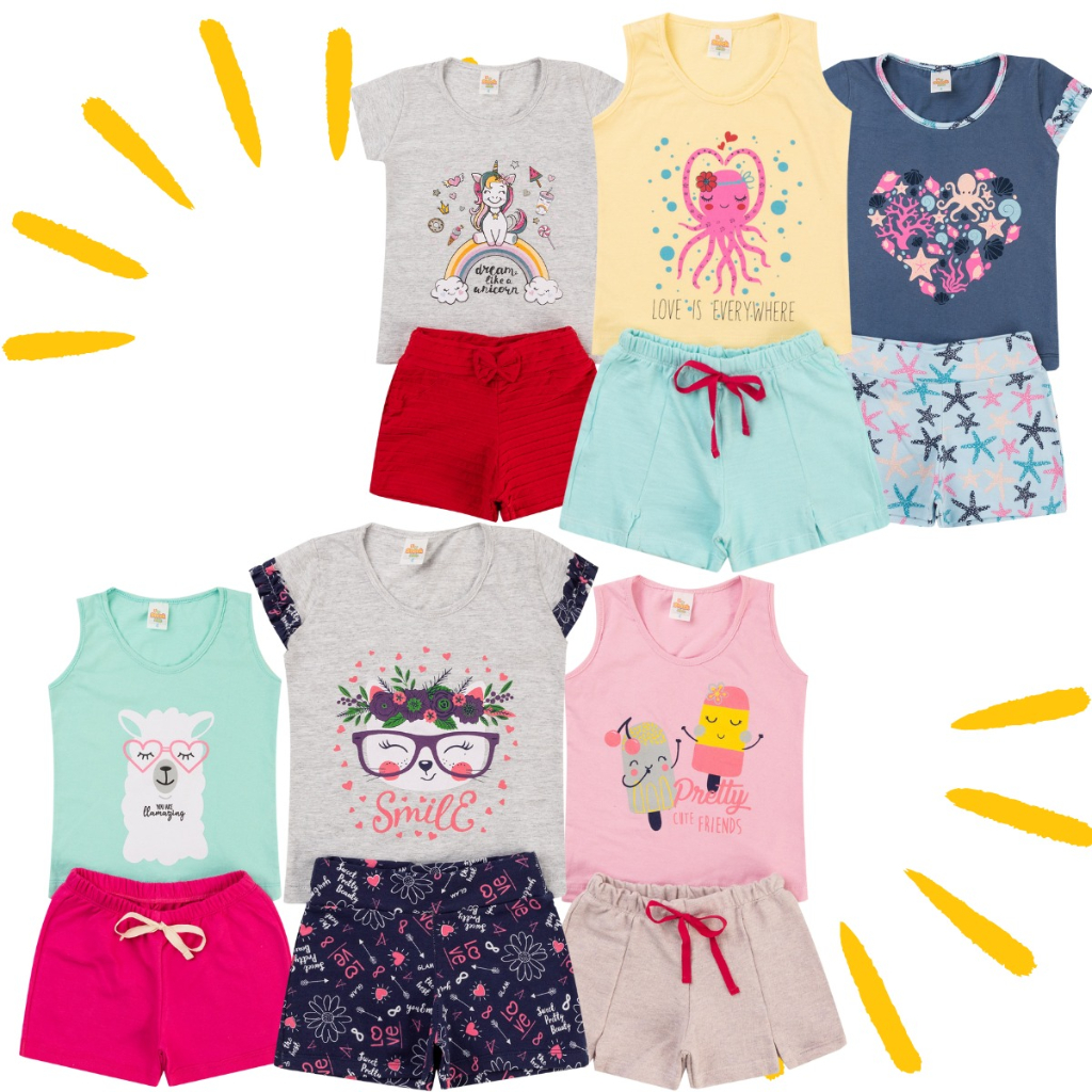 Lote Com 6 peças Infantil Feminino Roupa De Criança Para Menina Baby Look e Shorts Verão 3 Conjuntos