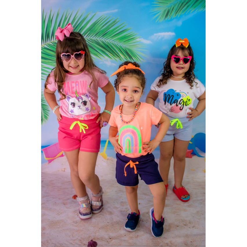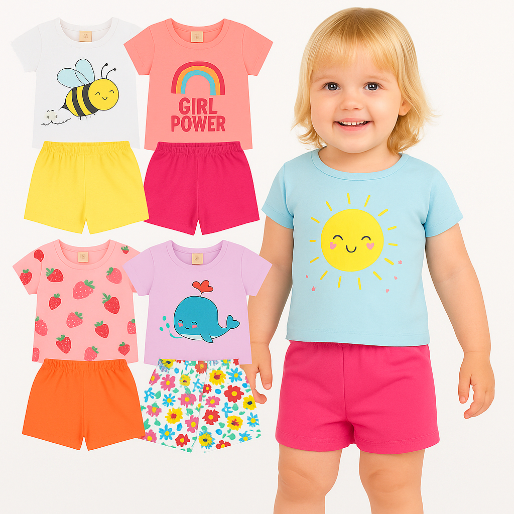 kit 10 Peças Roupa Infantil Menina Verão Kit 5 ou 1 Conjuntos de Verão Feminino Infantil Moda Praia ,Escola,Passeio