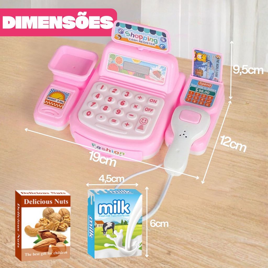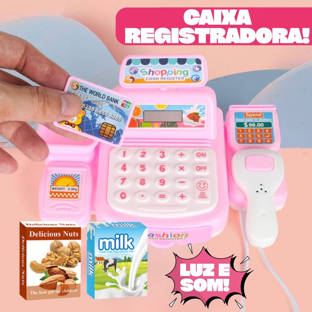 Kit Caixa Registradora Rosa C/ Acessórios E Scanner Interativo Luz e Som