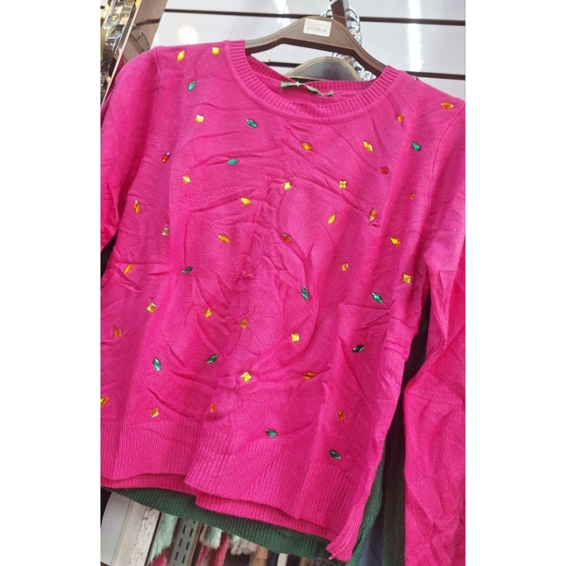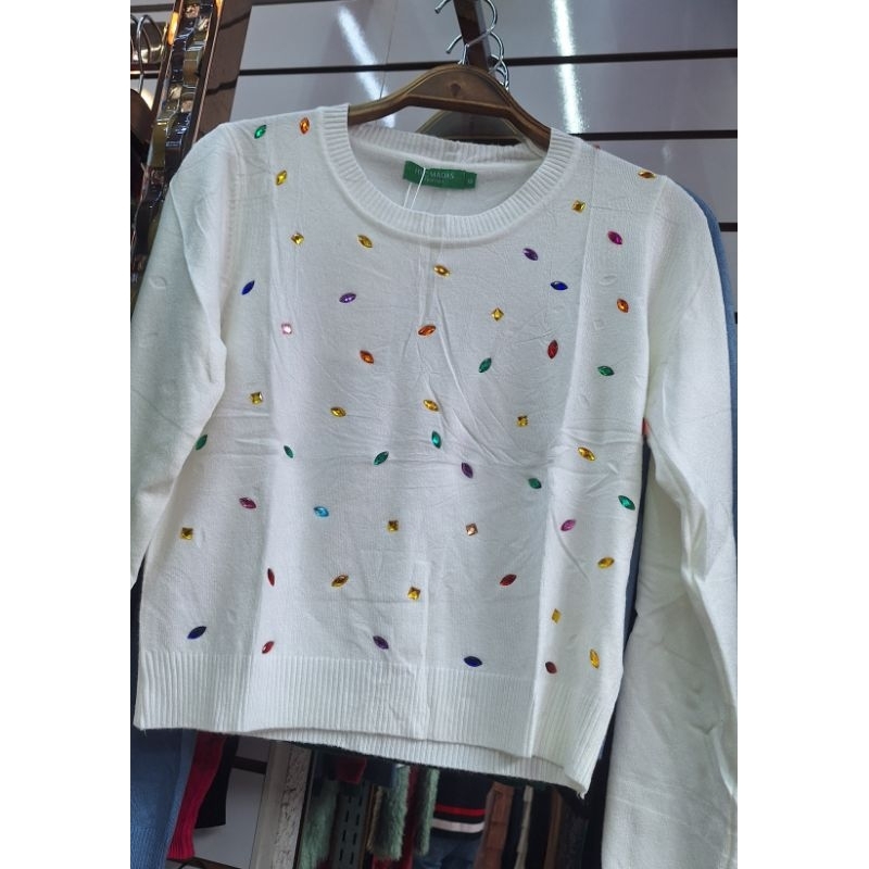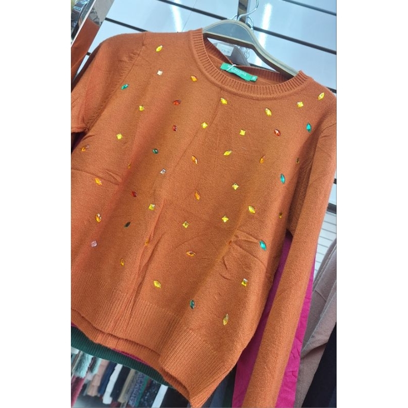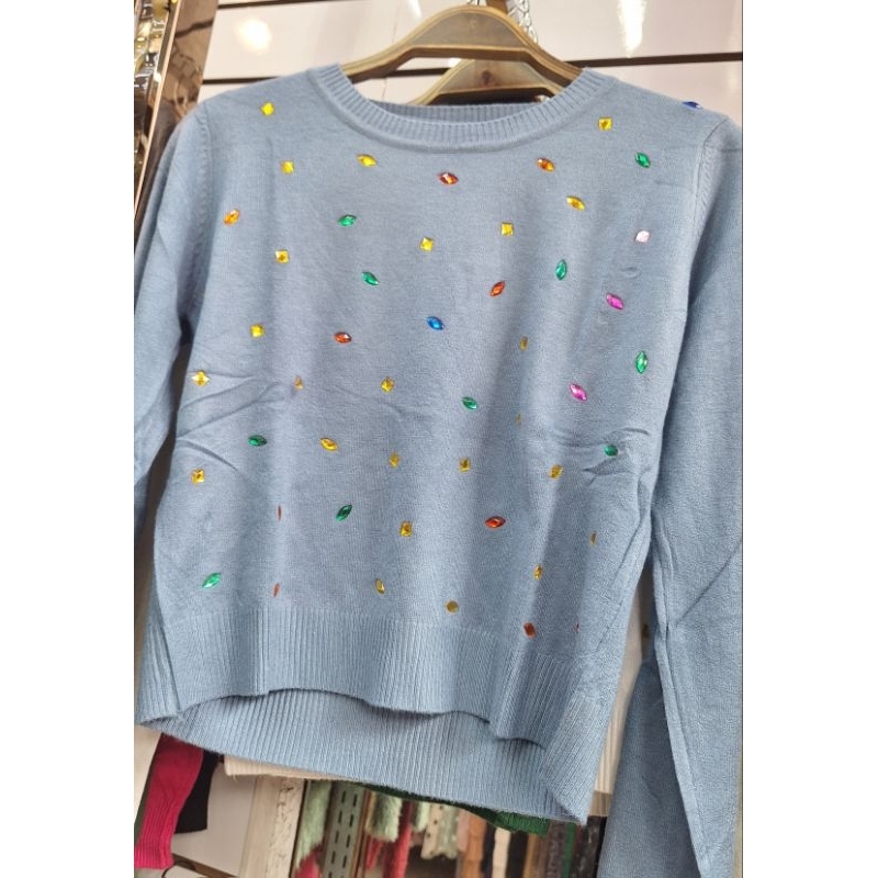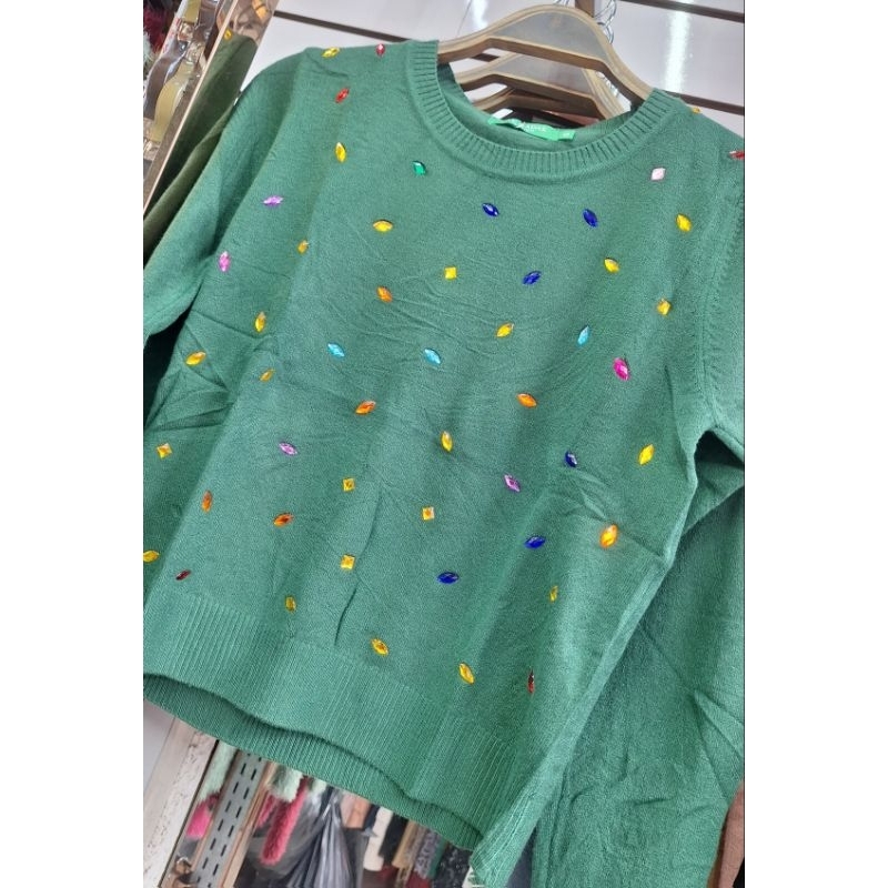 Blusa Manga Longa Feminina Com Pedrinhas na Frente Tecido Modal bem Quentinha