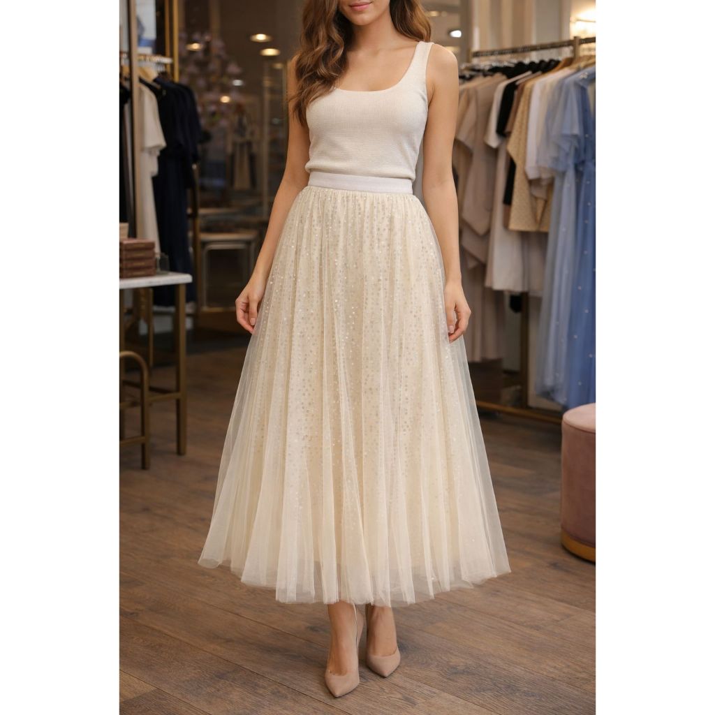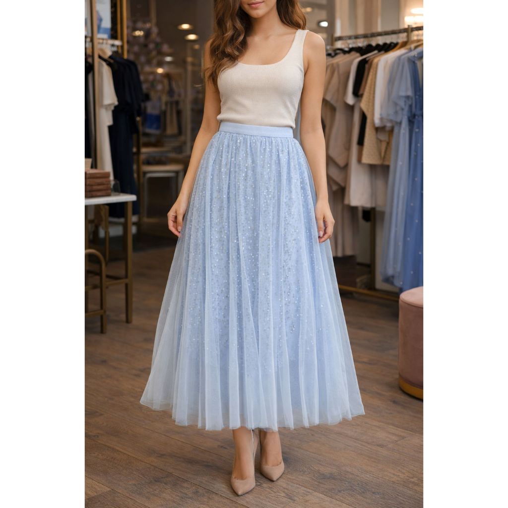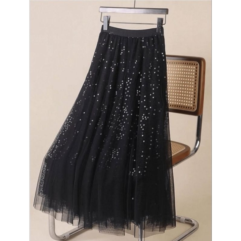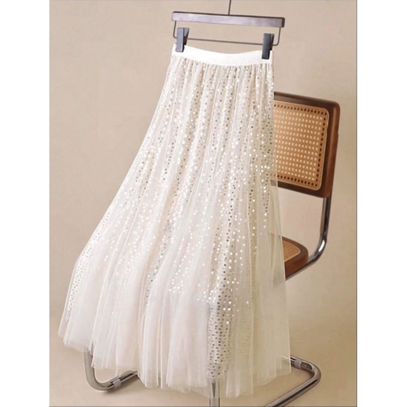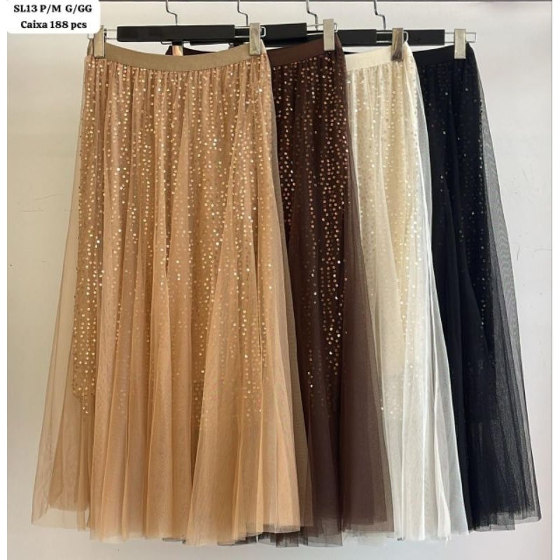 Saia Longa de Tule Com Paete Lantejoulas Grande de Ótima Qualidade Tendência Moda Evangélica