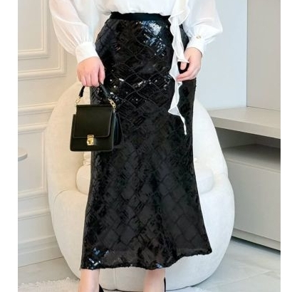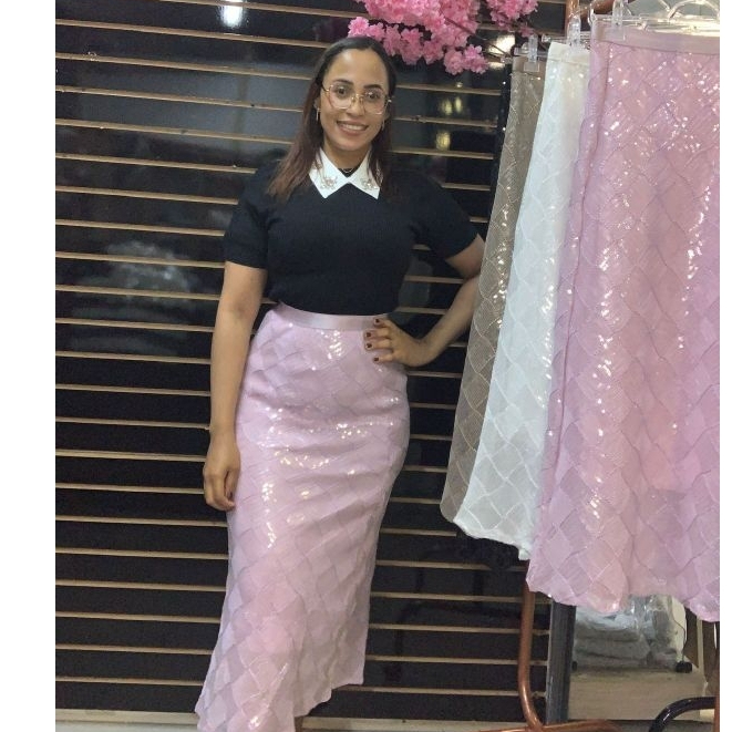 Saia Midi Toda Em Paete Com Brilho Cintura Alta Lançamento Novo