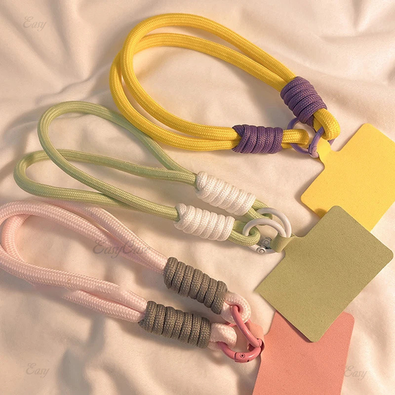 Anti-Perda Pulseira Curta Pingente INS Estilo Trança Cordão Do Telefone Móvel Cor Sólida Cinta Pendurado Corda Com Espaç