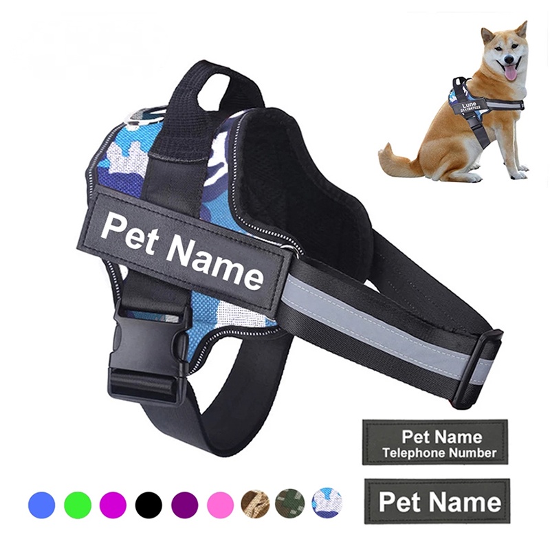 Arnês Do Cão Reflexivo Respirável Ajustável Pet Harness Vest Com ID Remendo Personalizado Ao Ar Livre Andando Fontes