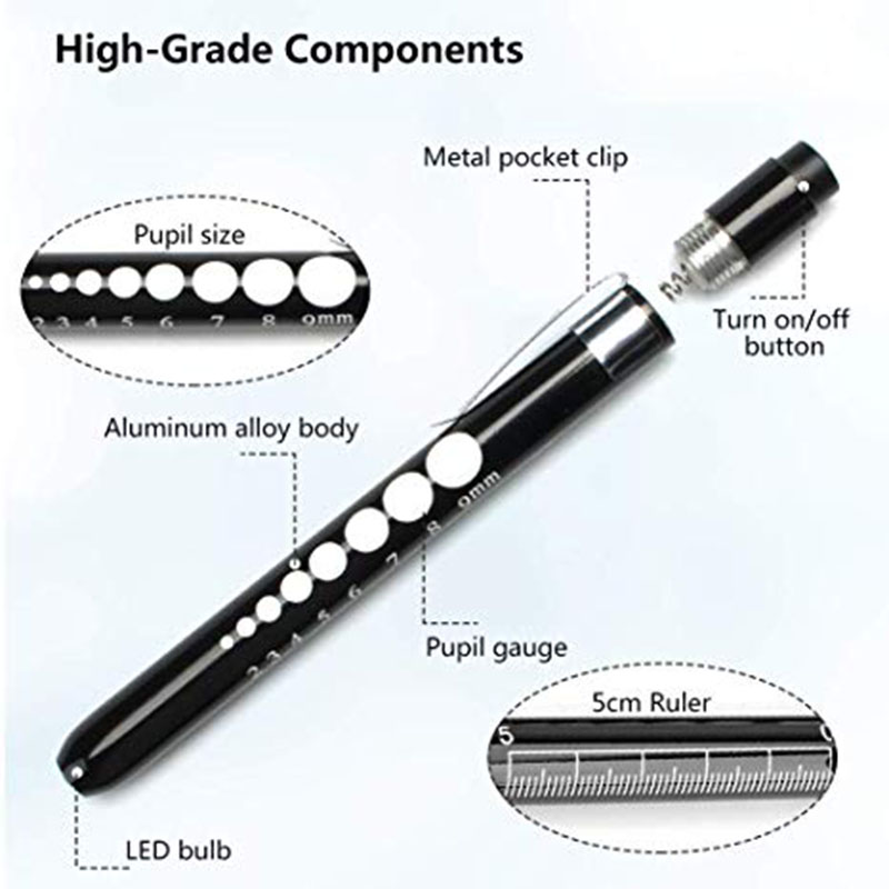 Portable LED Flashlight Work Light Medical First Aid Pen Light Torch Lamp With Pupil Gauge Measurements Doctor Nurse Diagnosis