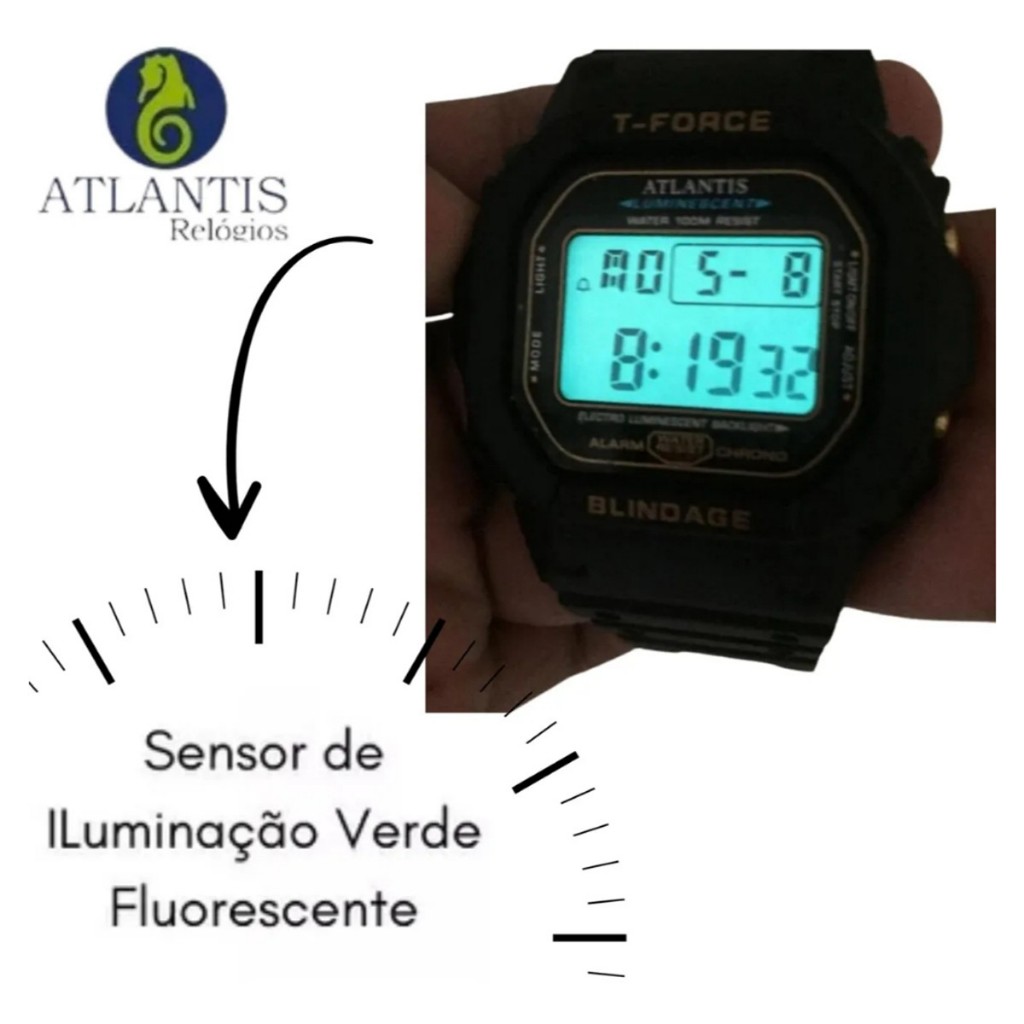 Relógio Atlantis 7305A Grande Sports Blindage T-force Militar Mergulho Preto Luminoso