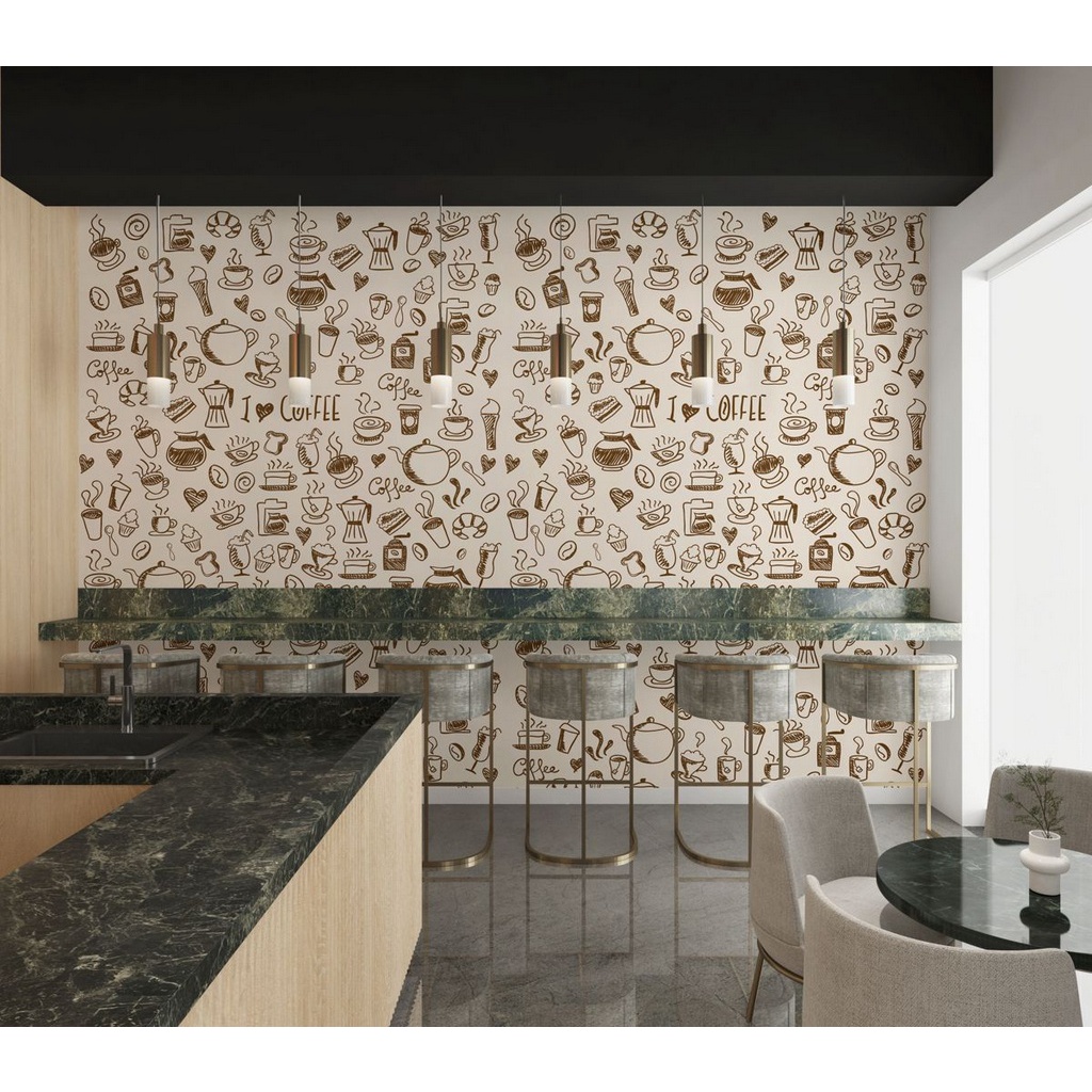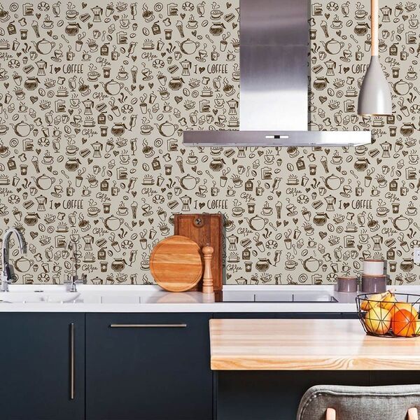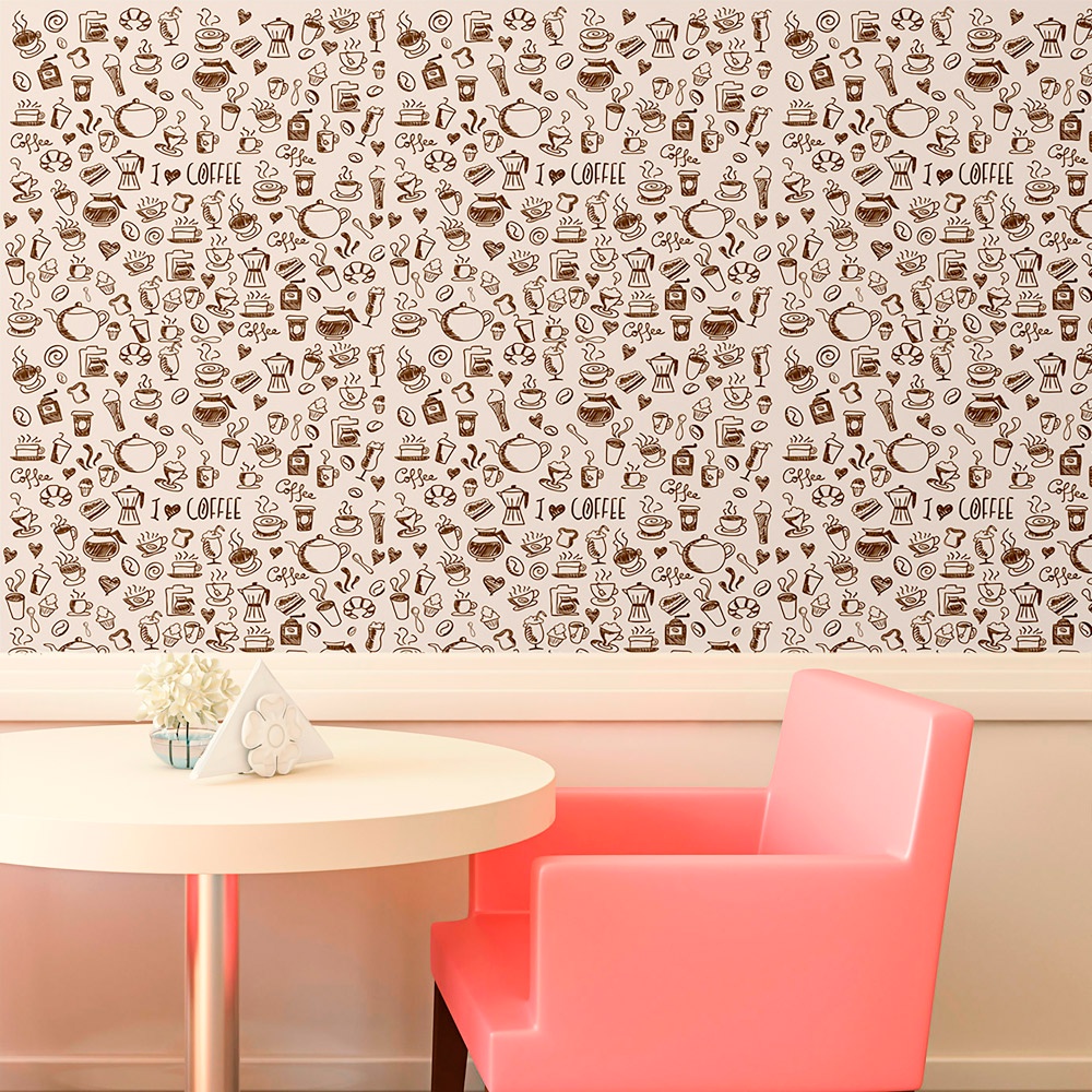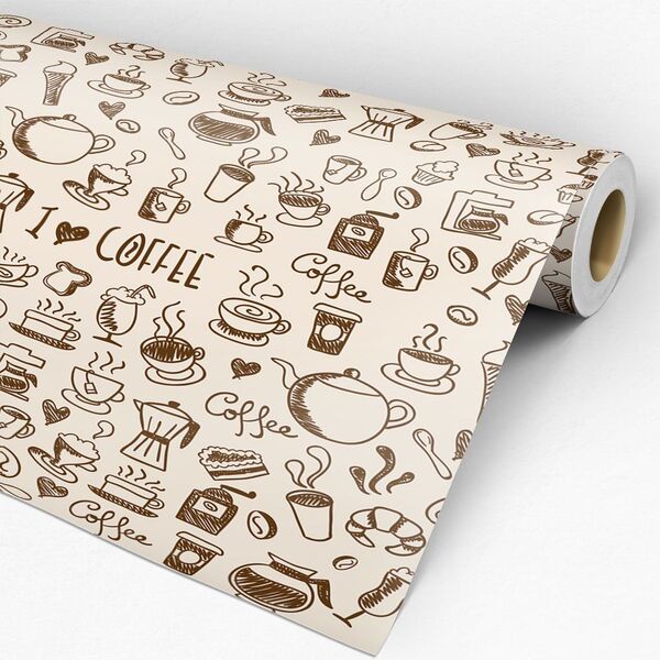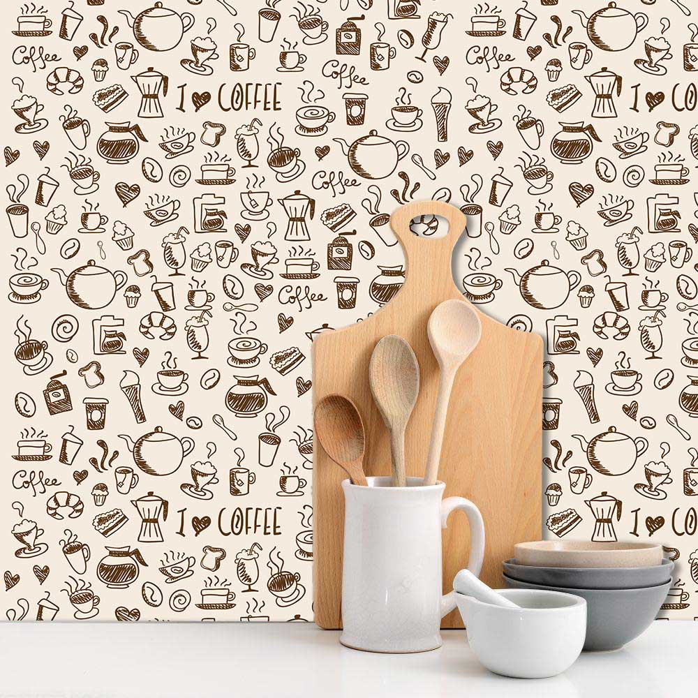 KIT 4 Papel de Parede Adesivo Autocolante Casual Xicara Café Marrom Bege Cozinha Banheiro Sala 3M