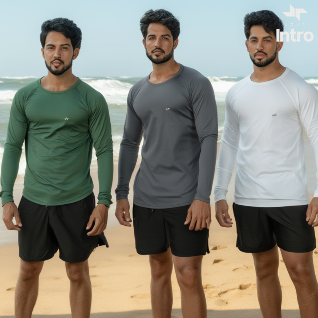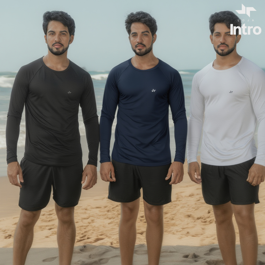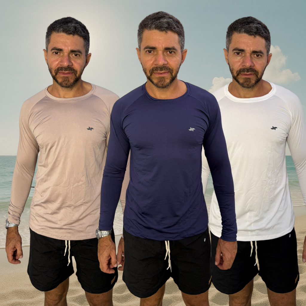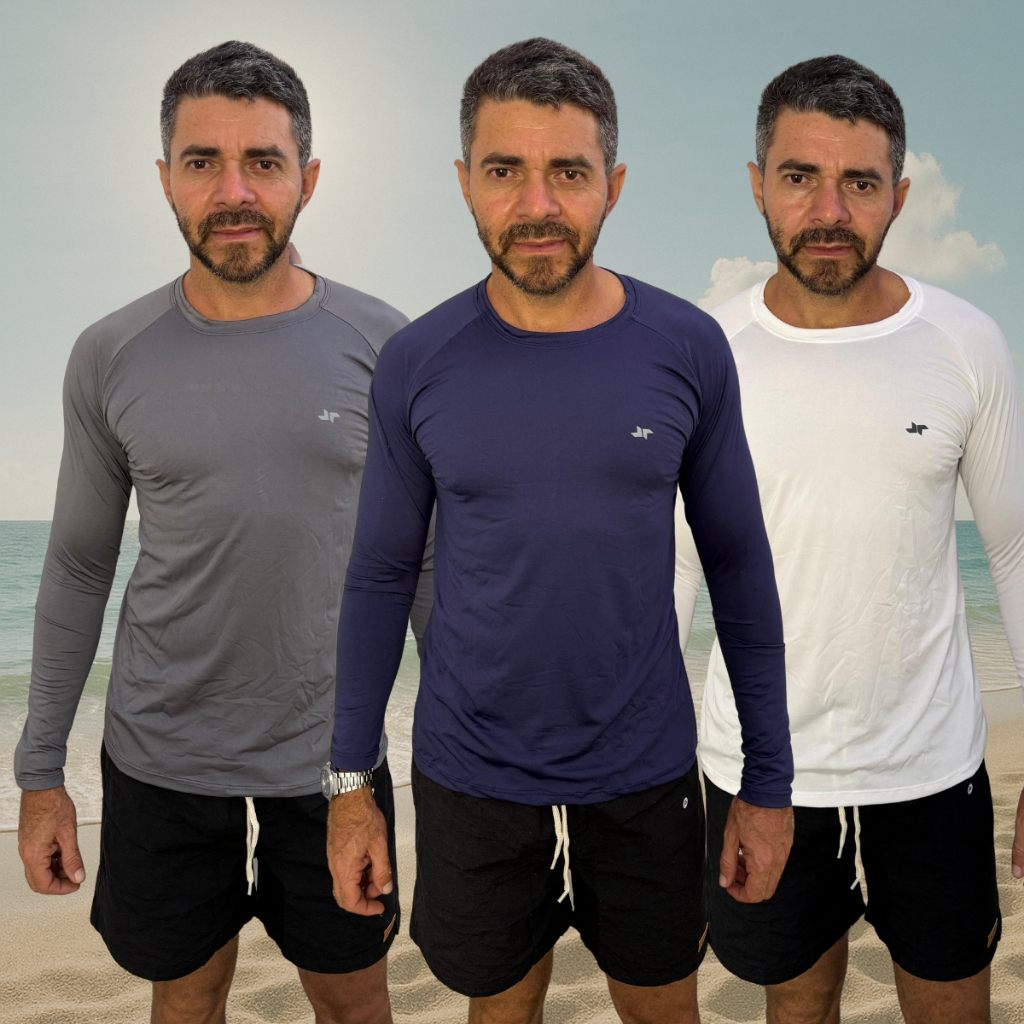 Kit 3 Camisa Térmica Proteção Uv 50+ Camiseta Blusa Malha Fria Unissex Academia Manga Longa Praia