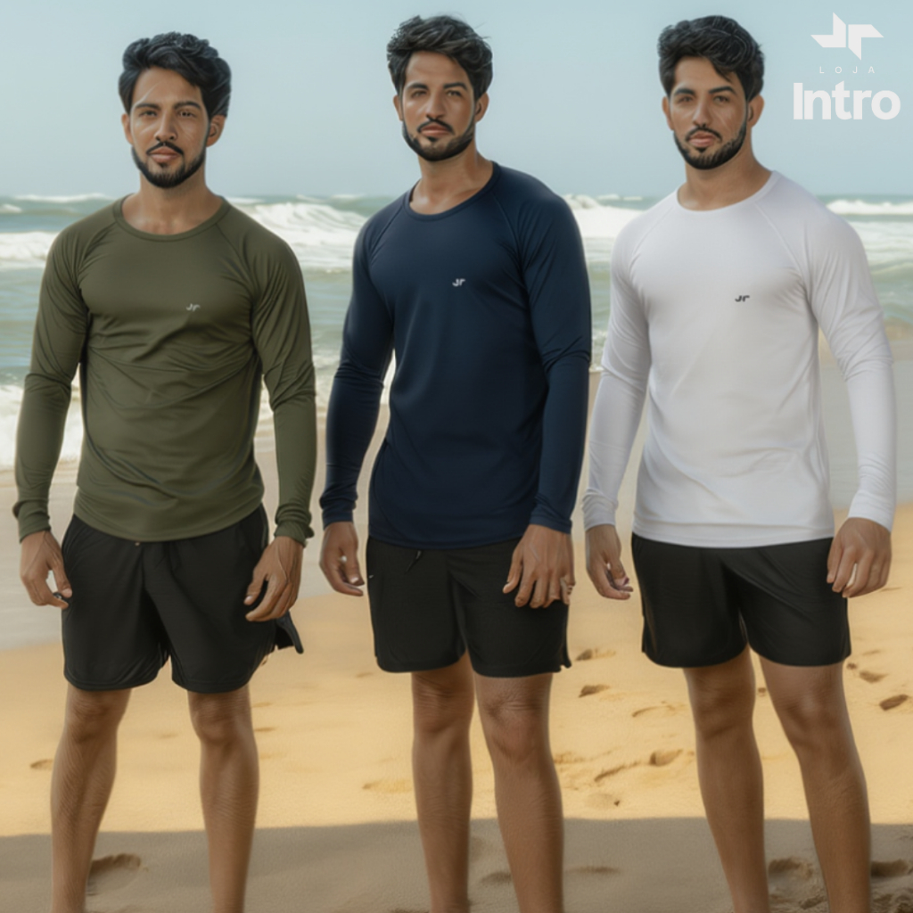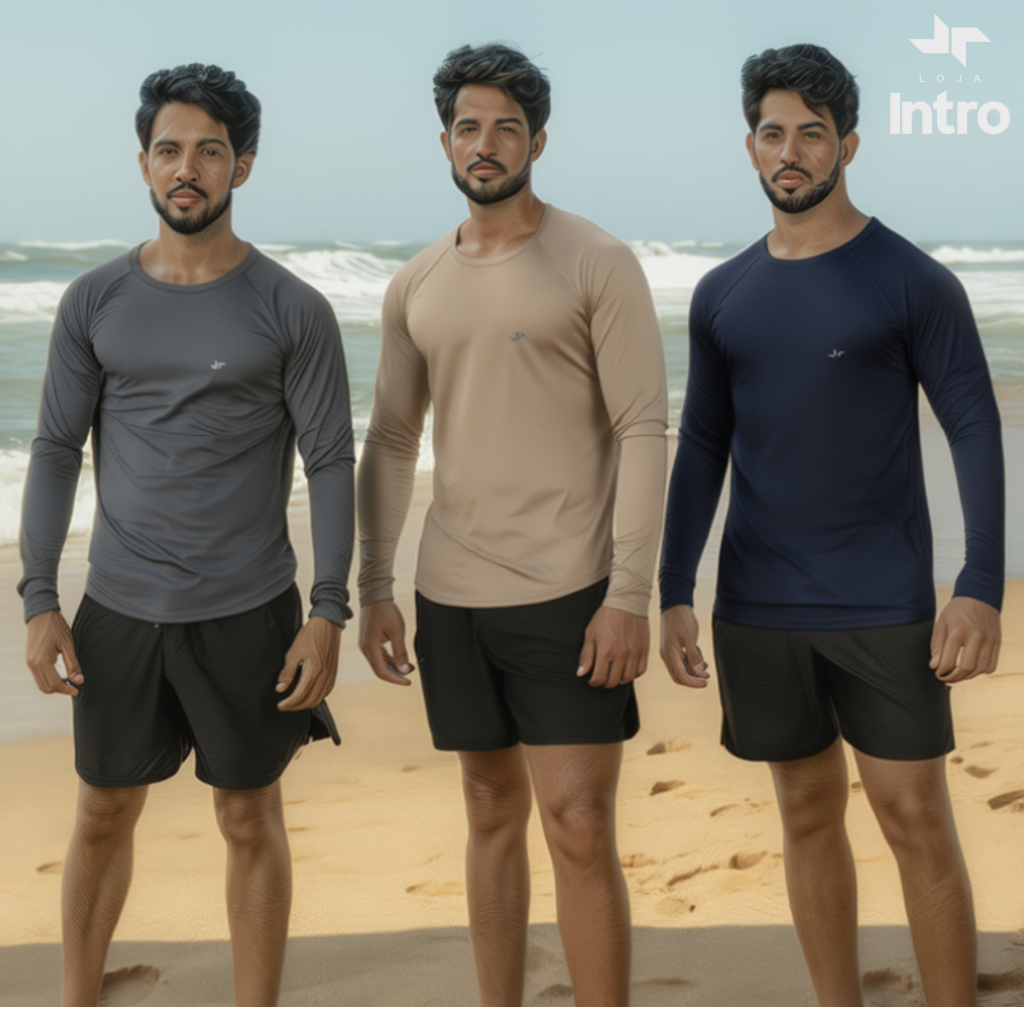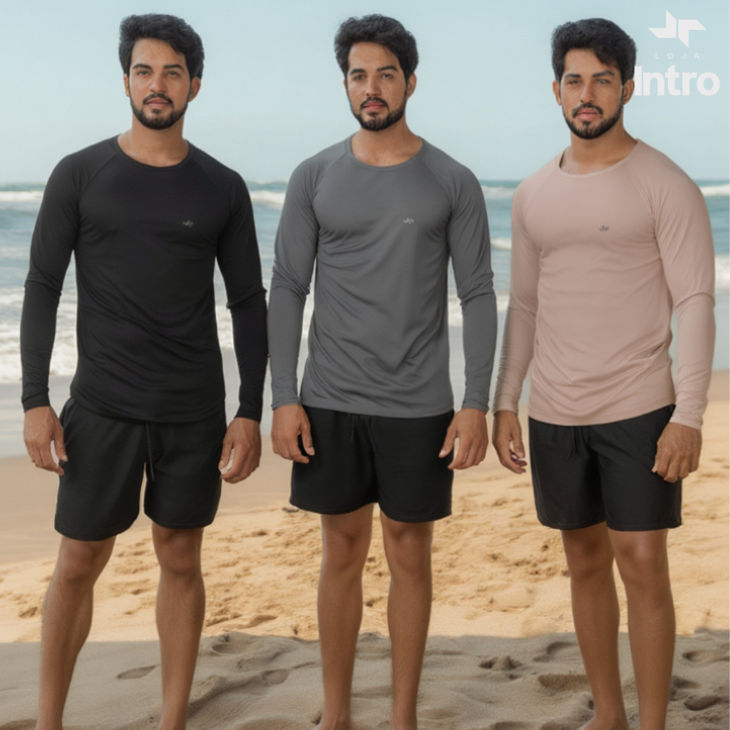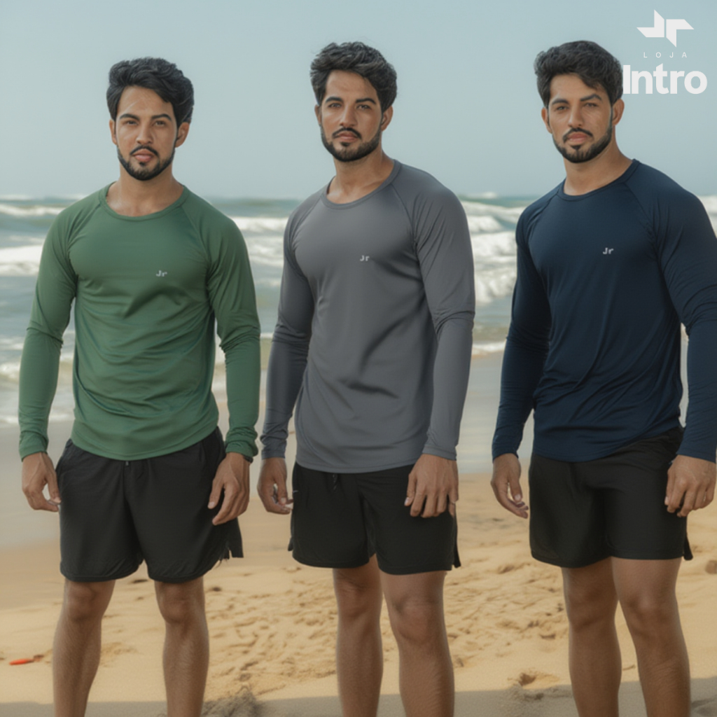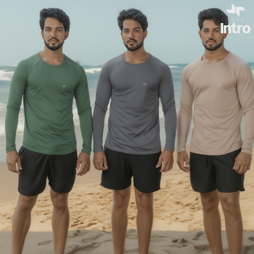 Kit 3 Camisa Térmica Proteção Uv 50+ Camiseta Blusa Malha Fria Unissex Academia Manga Longa Praia