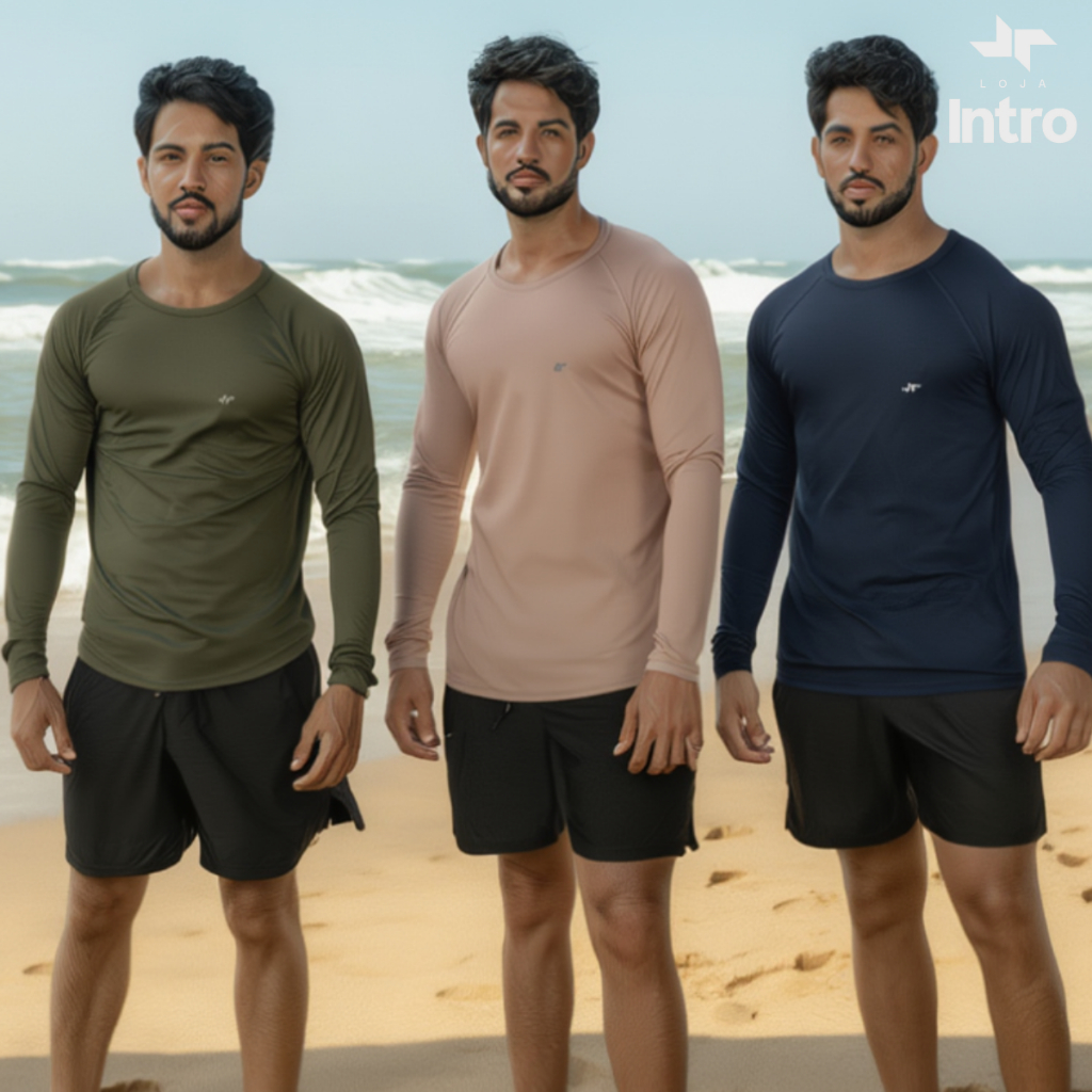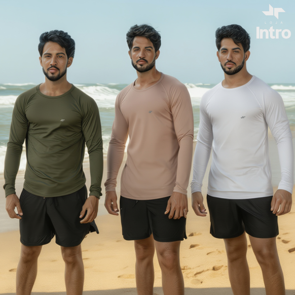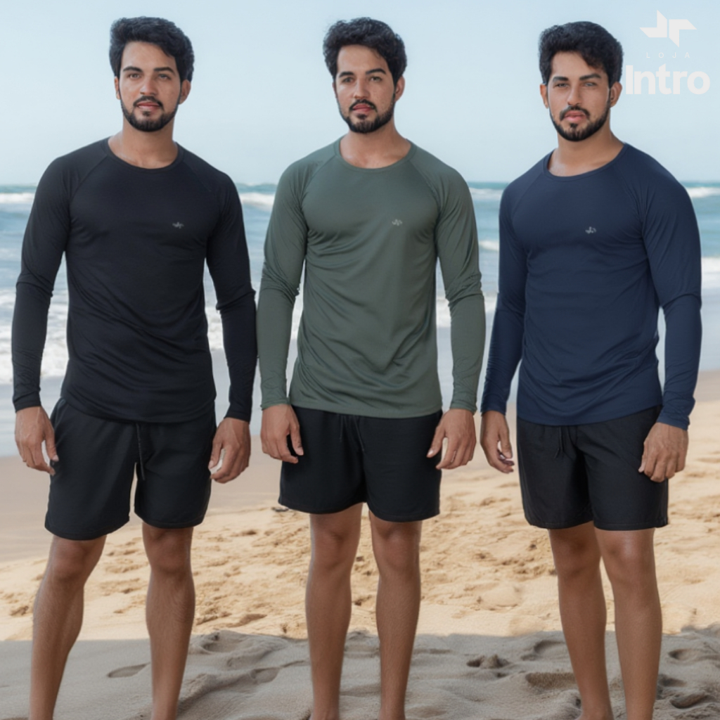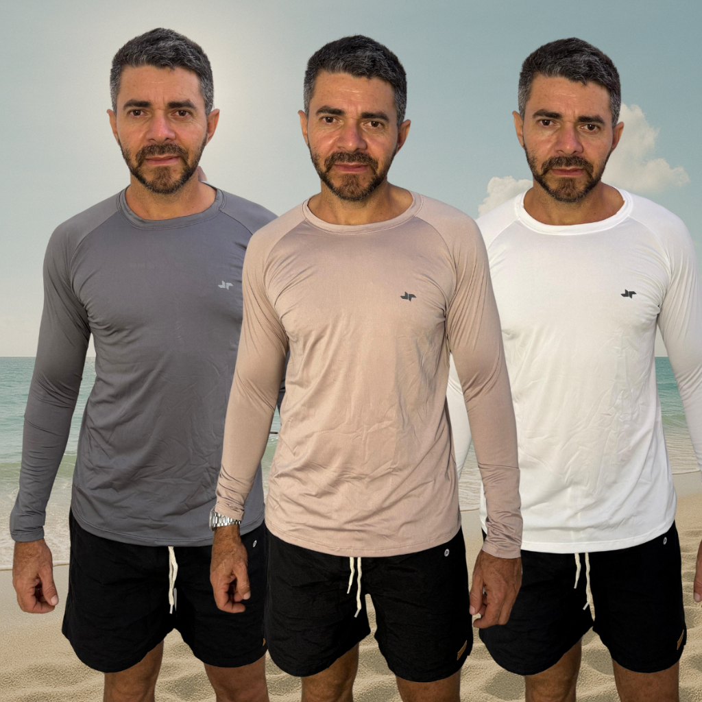 Kit 3 Camisa Térmica Proteção Uv 50+ Camiseta Blusa Malha Fria Unissex Academia Manga Longa Praia