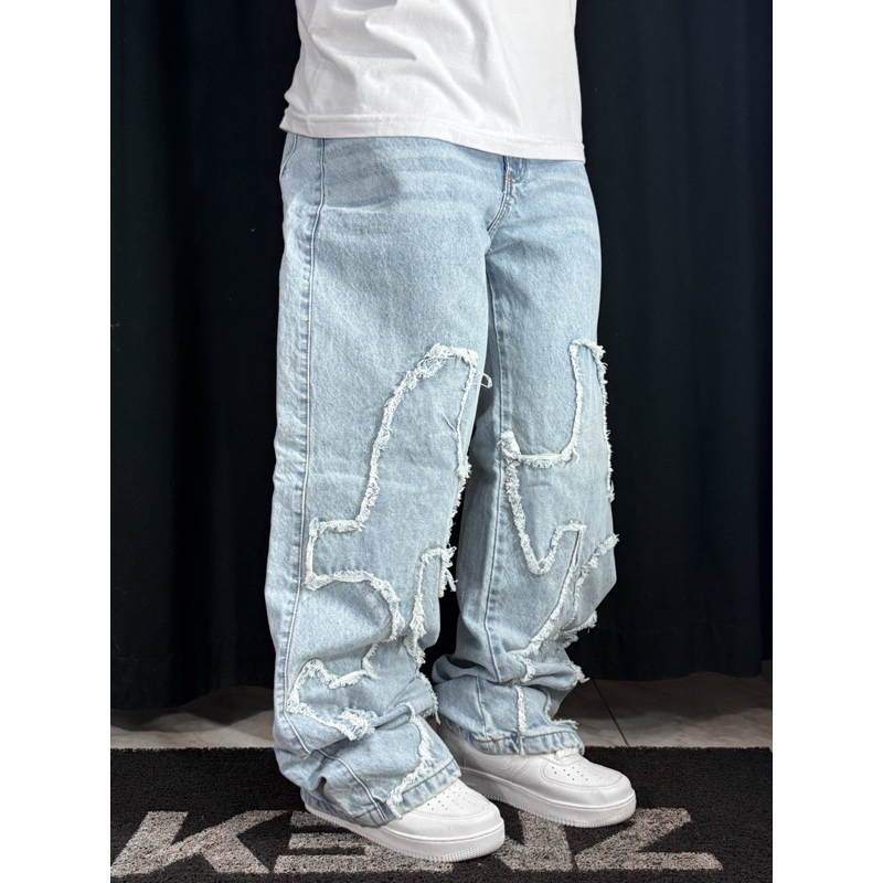 Calça Jeans Reta PatchWork Sky Blue