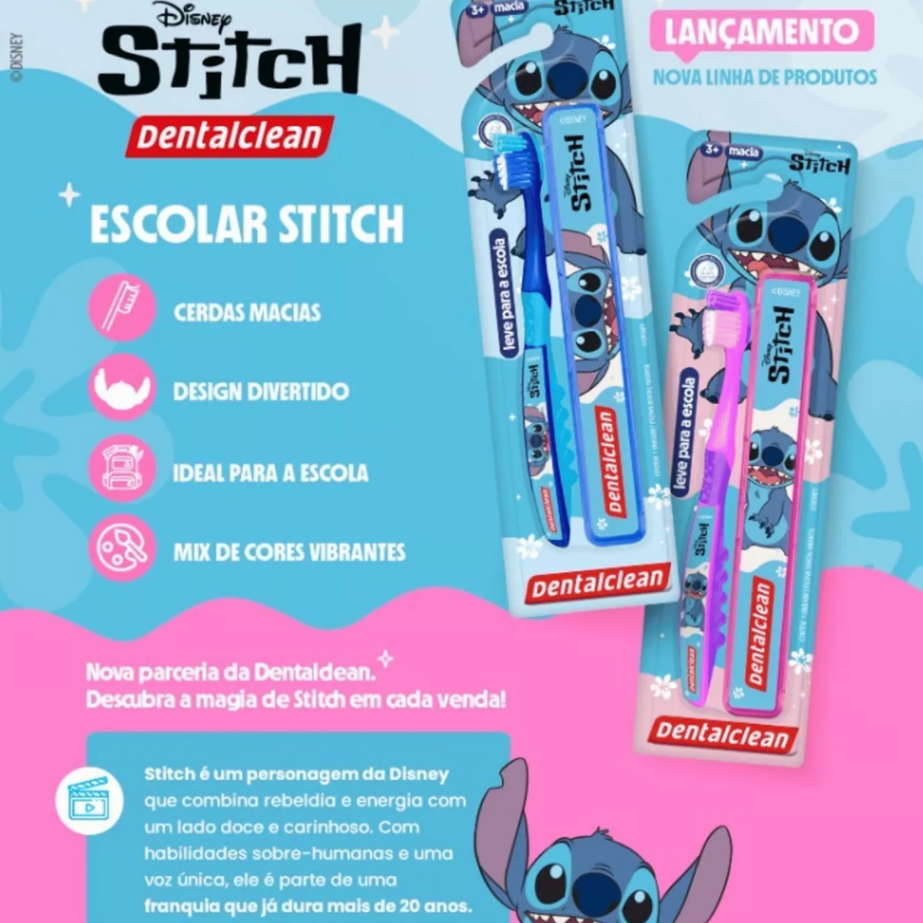 Escova De Dente Infantil Escolar Stitch Dentalclean (macia) Cor Rosa