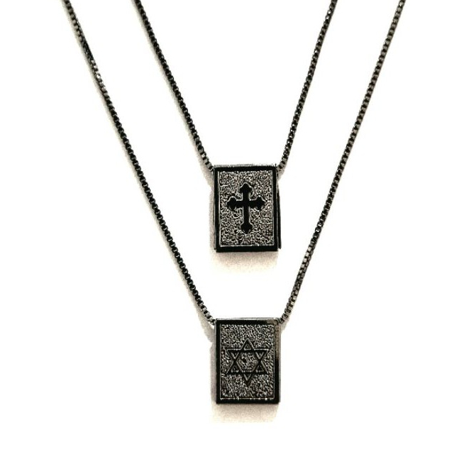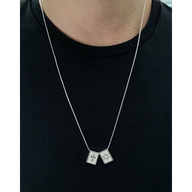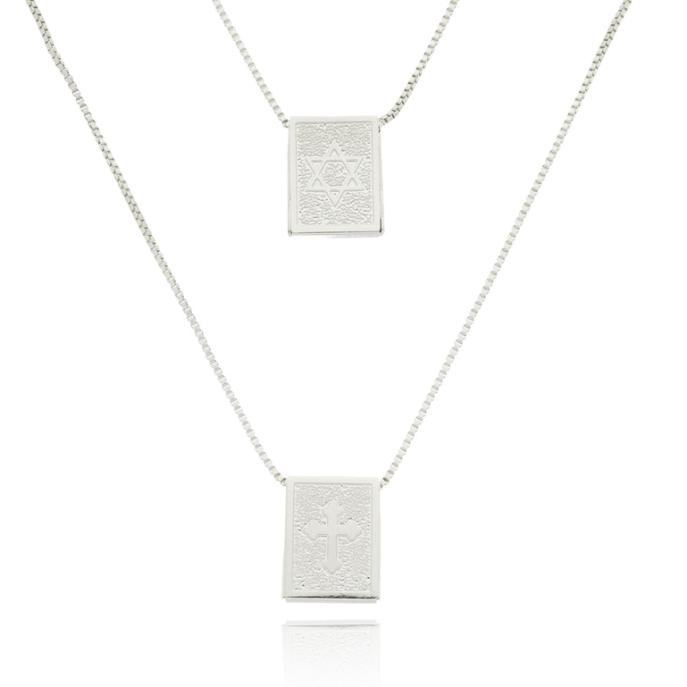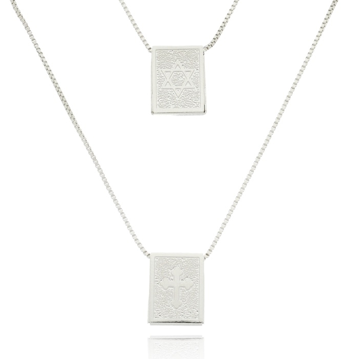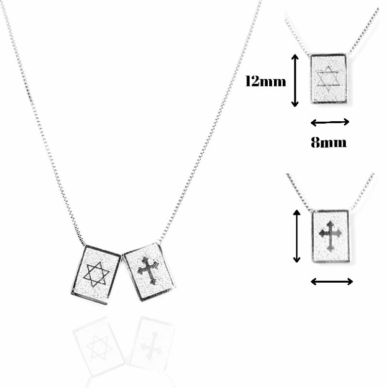 Escapulário Estrela de Davi e Cruz Banho de Prata 925 Estilo Articulado