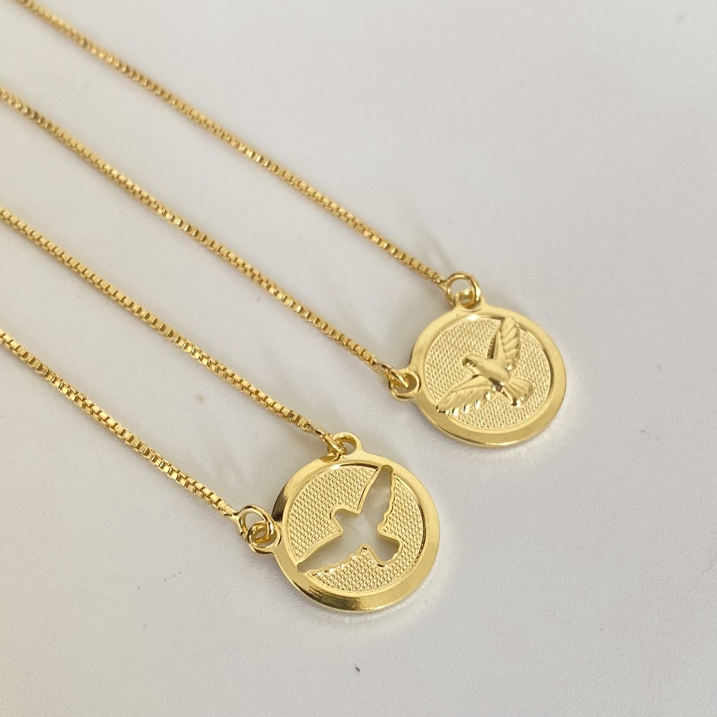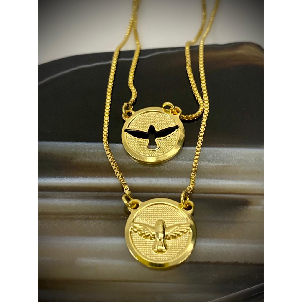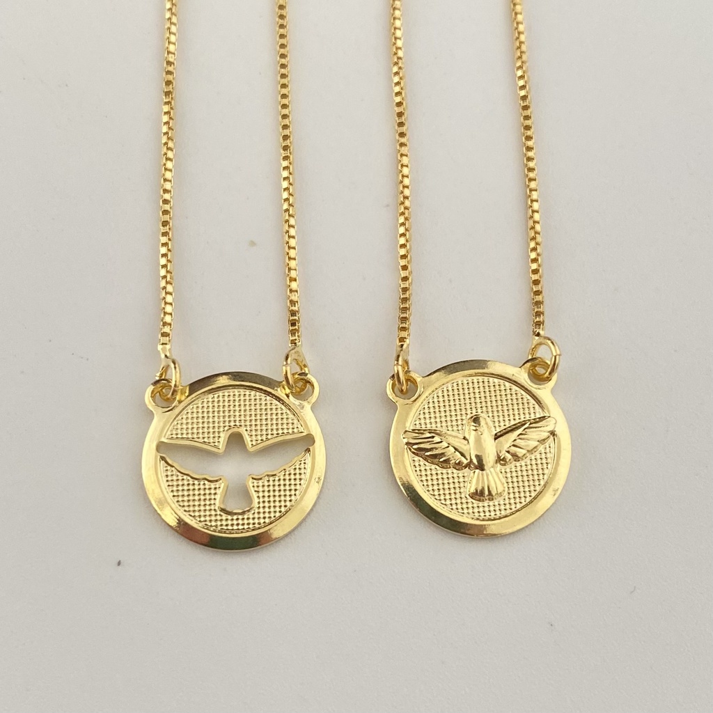 Escapulário Feminino Espírito Santo Banho Ouro 18k Presente Religioso