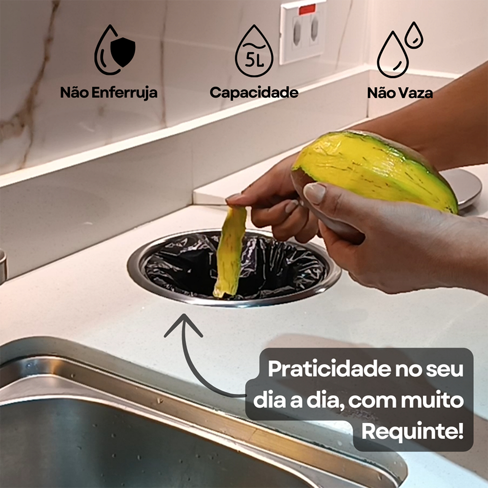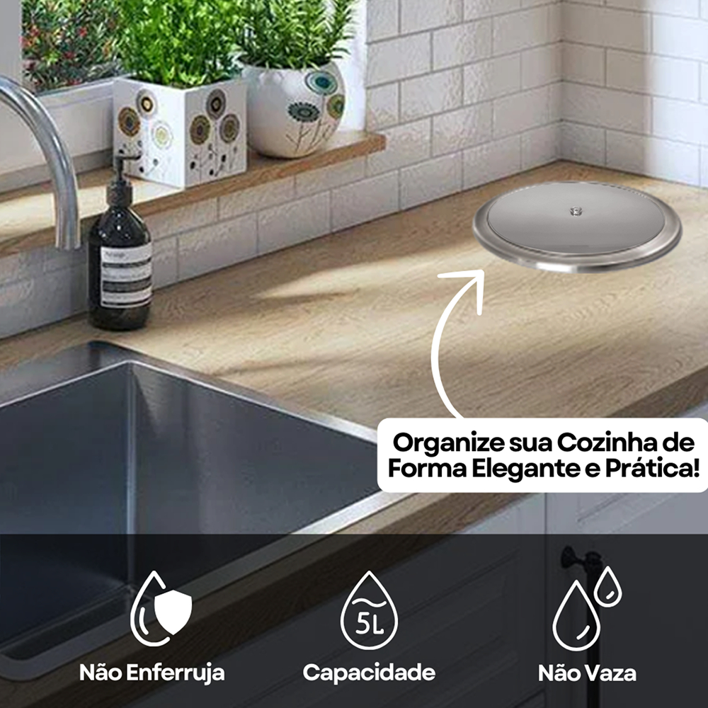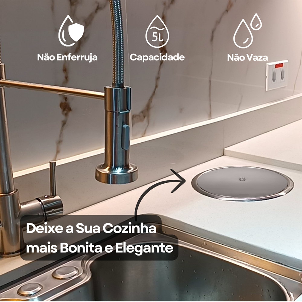 Lixeira de Embutir Aço Inox Tampa Lisa Novo Modelo Aço Inox 5L com Balde de Alumínio Escovado