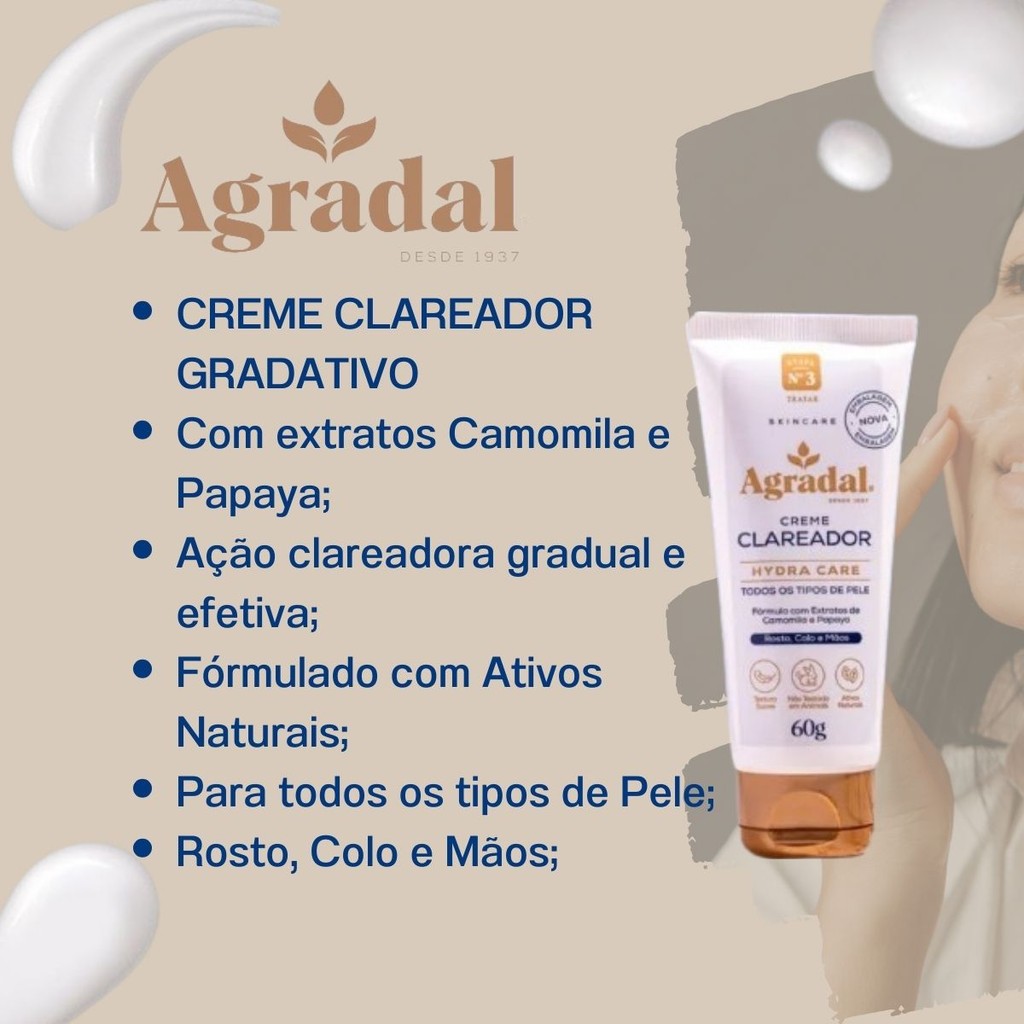 Agradal Creme Clareador Fase 3 Para Todos os Tipos de Pele 60g