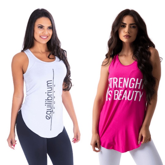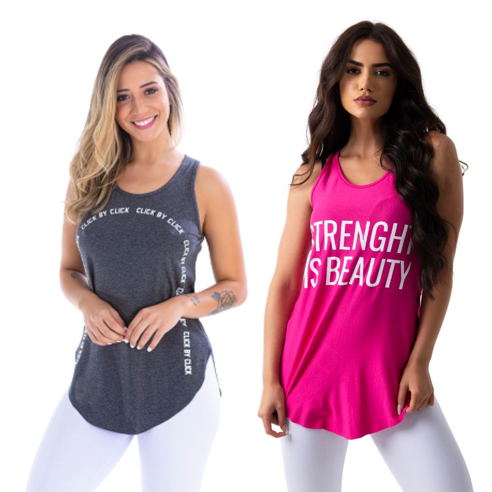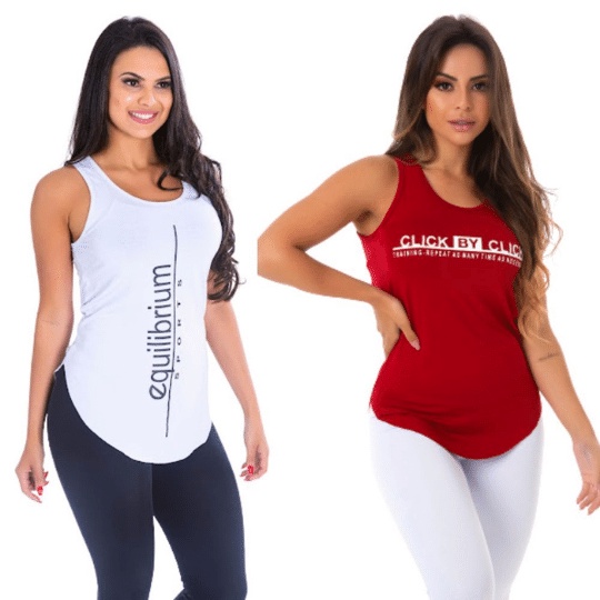 Kit com 2 Camisetas Regatas Femininas Fitness Basicas Academia Mulher Crossfit Yoga Pilates