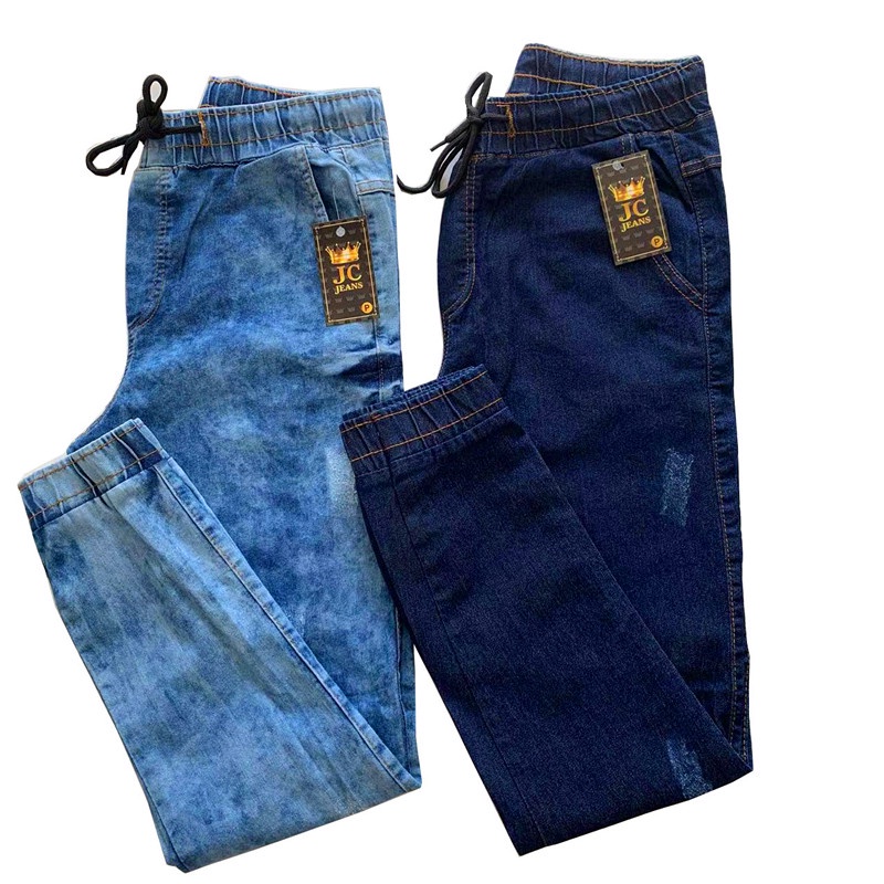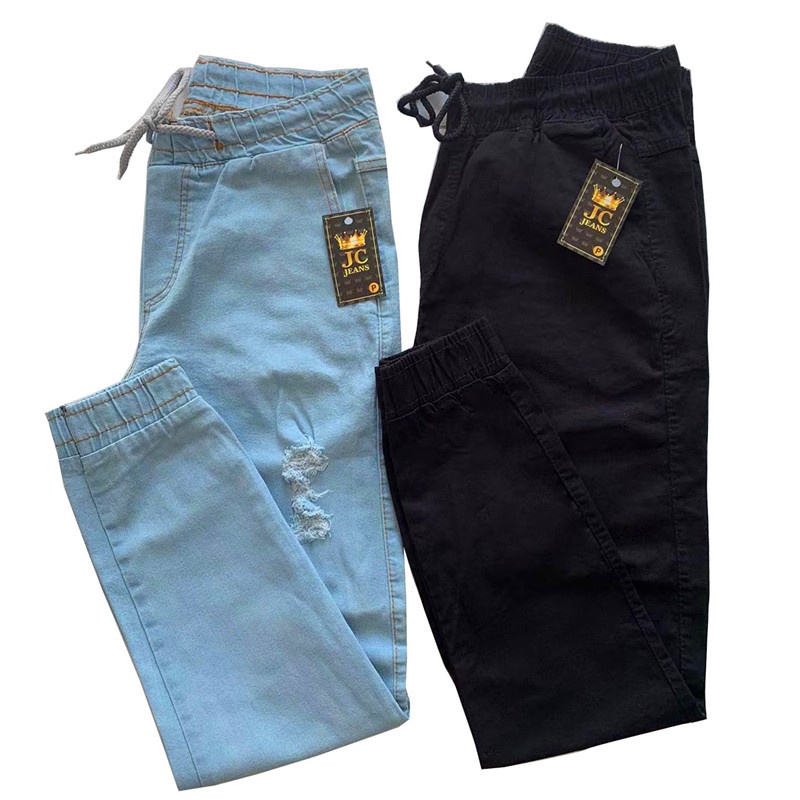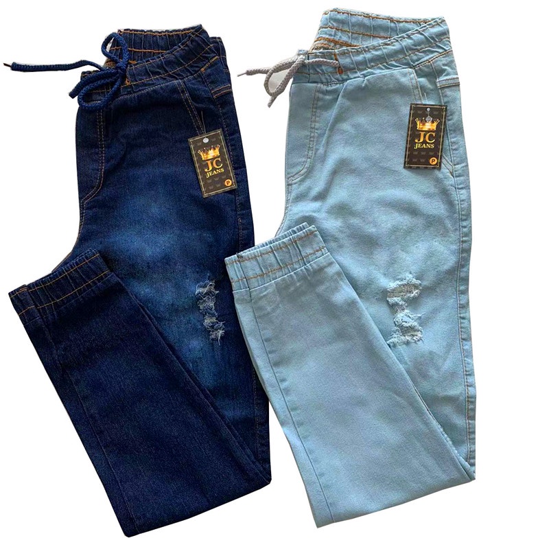 Kit 2 Calça Masculina Jeans Sarja Rasgado Jogger Com Punho Elastico